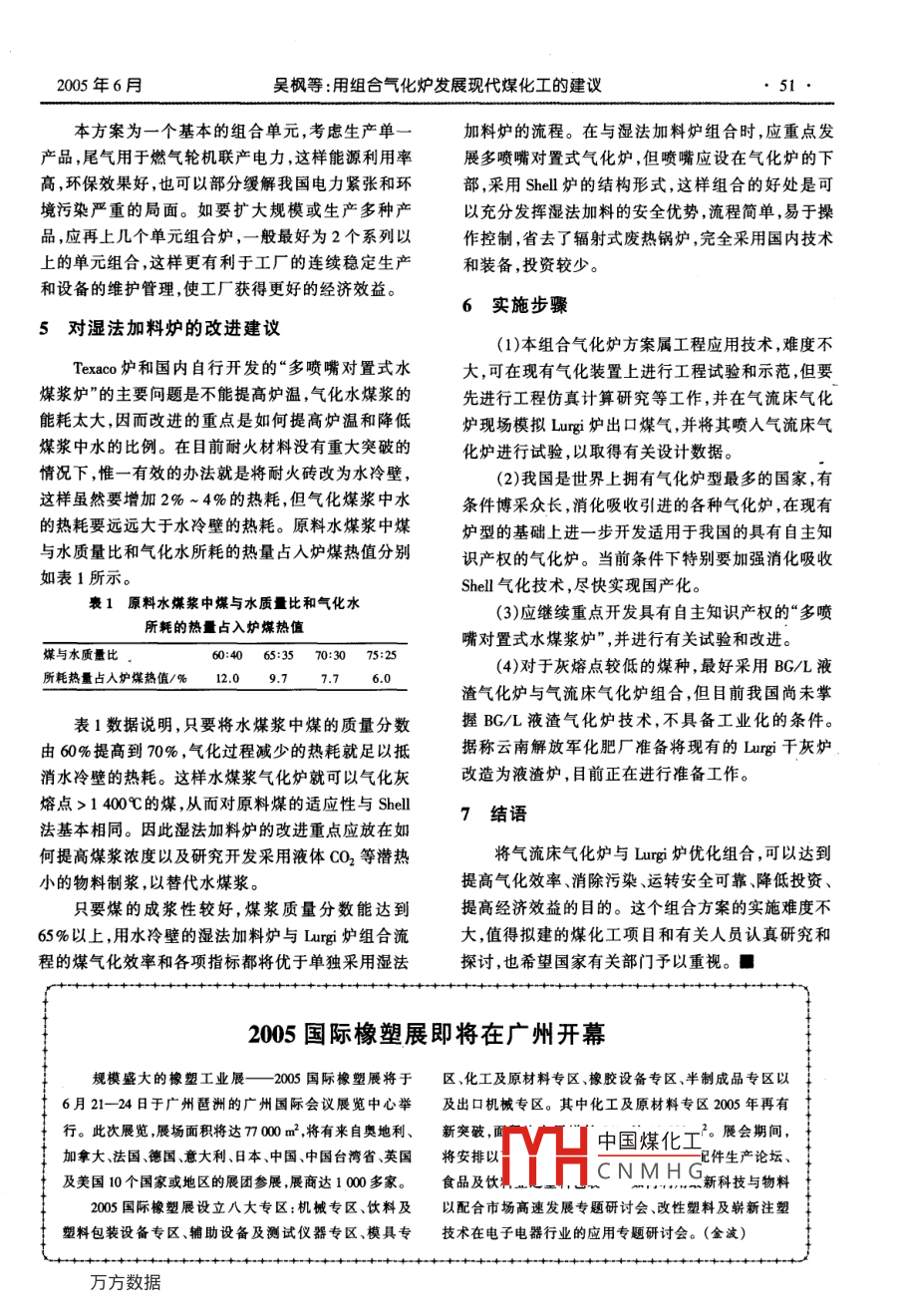 用組合氣化爐發(fā)展現(xiàn)代煤化工的建議