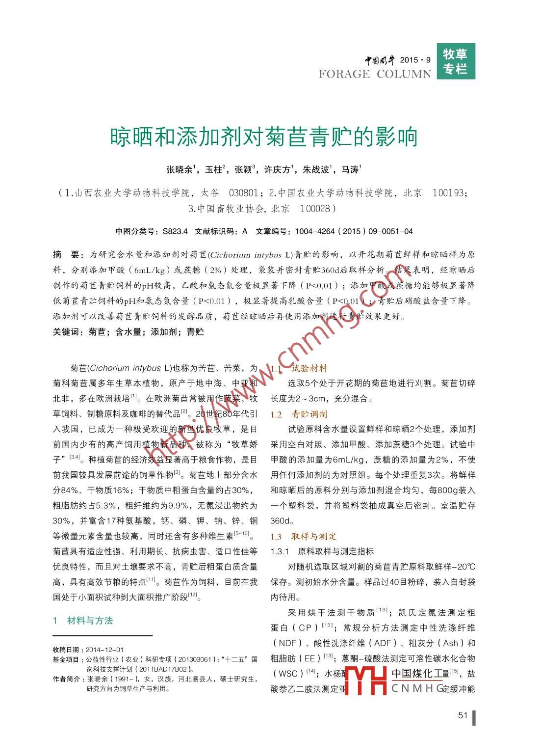 晾曬和添加劑對菊苣青貯的影響