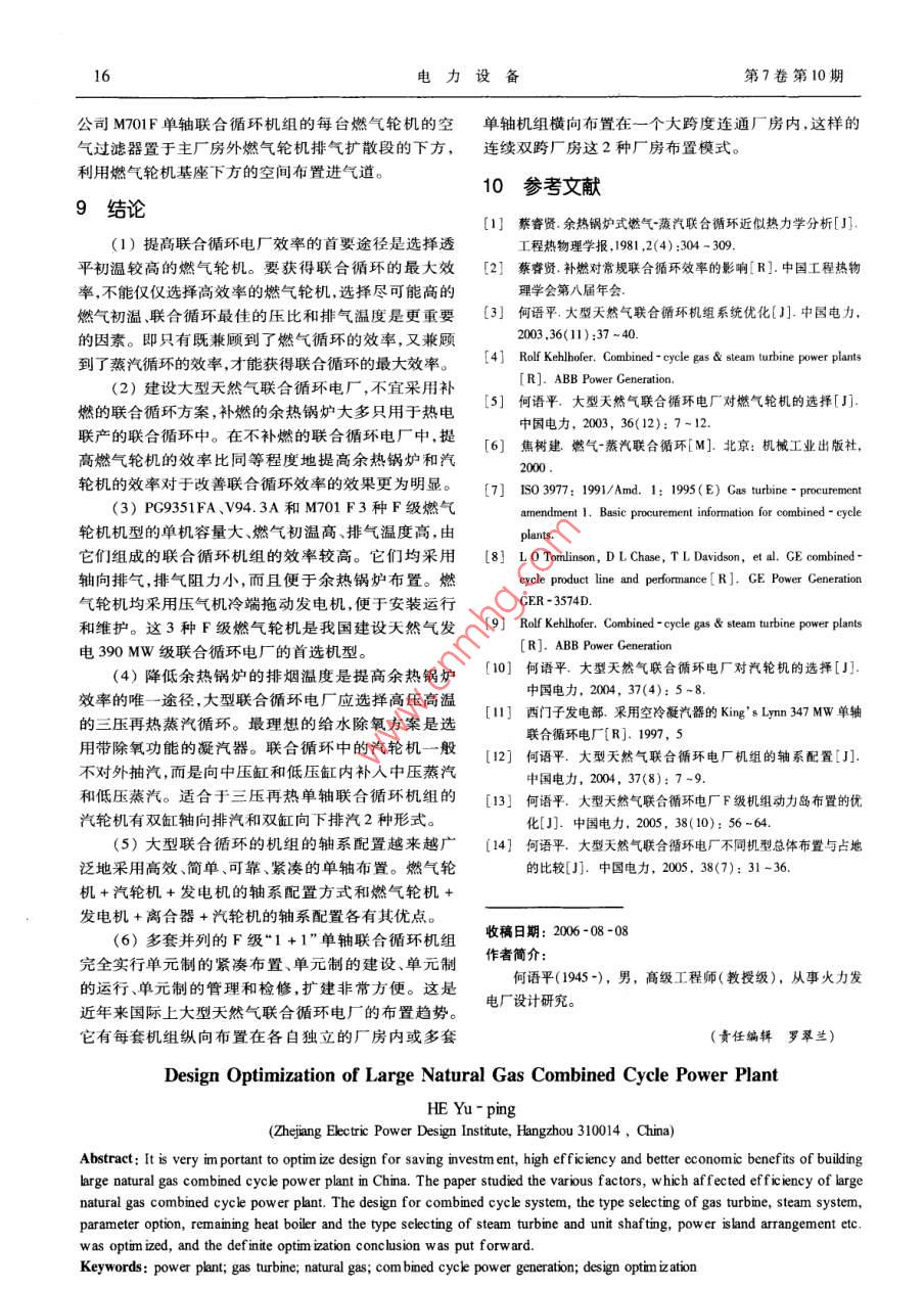 大型天然氣聯(lián)合循環(huán)電廠的設(shè)計優(yōu)化