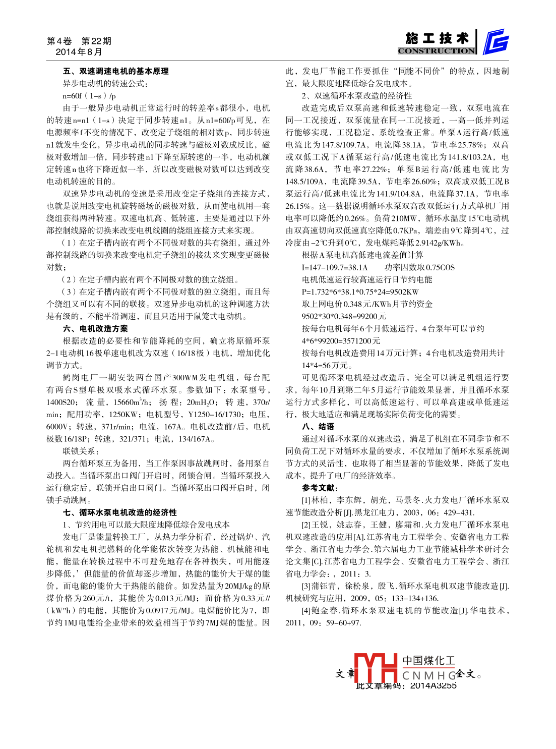 火力發(fā)電廠循環(huán)水泵雙速節(jié)能改造