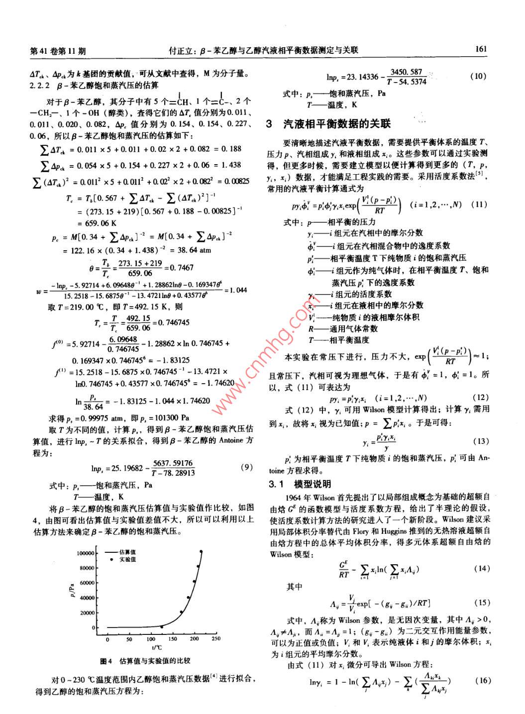 β-苯乙醇與乙醇汽液相平衡數(shù)據(jù)測(cè)定與關(guān)聯(lián)