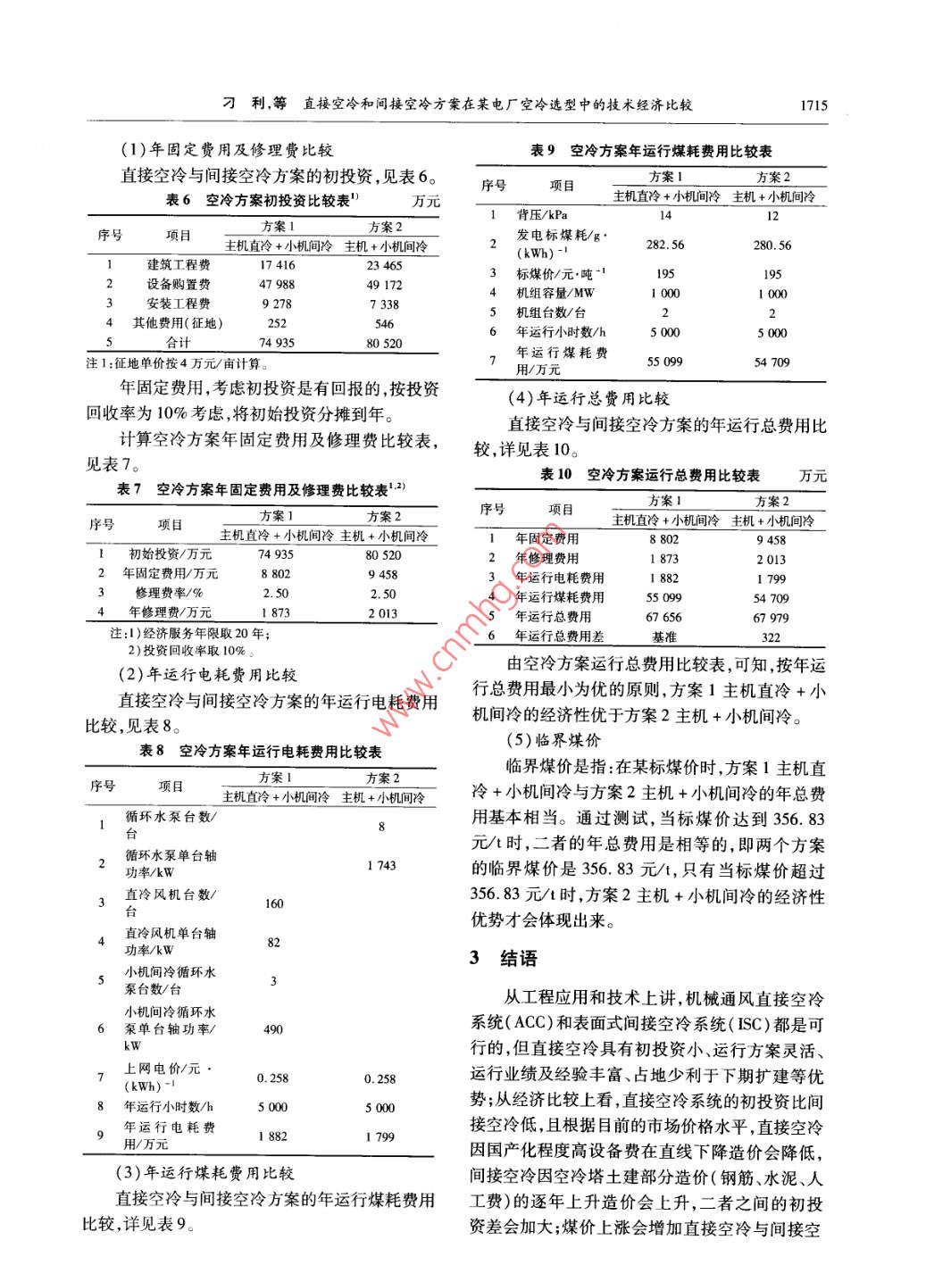 直接空冷和間接空冷方案在某電廠空冷選型中的技術(shù)經(jīng)濟(jì)比較