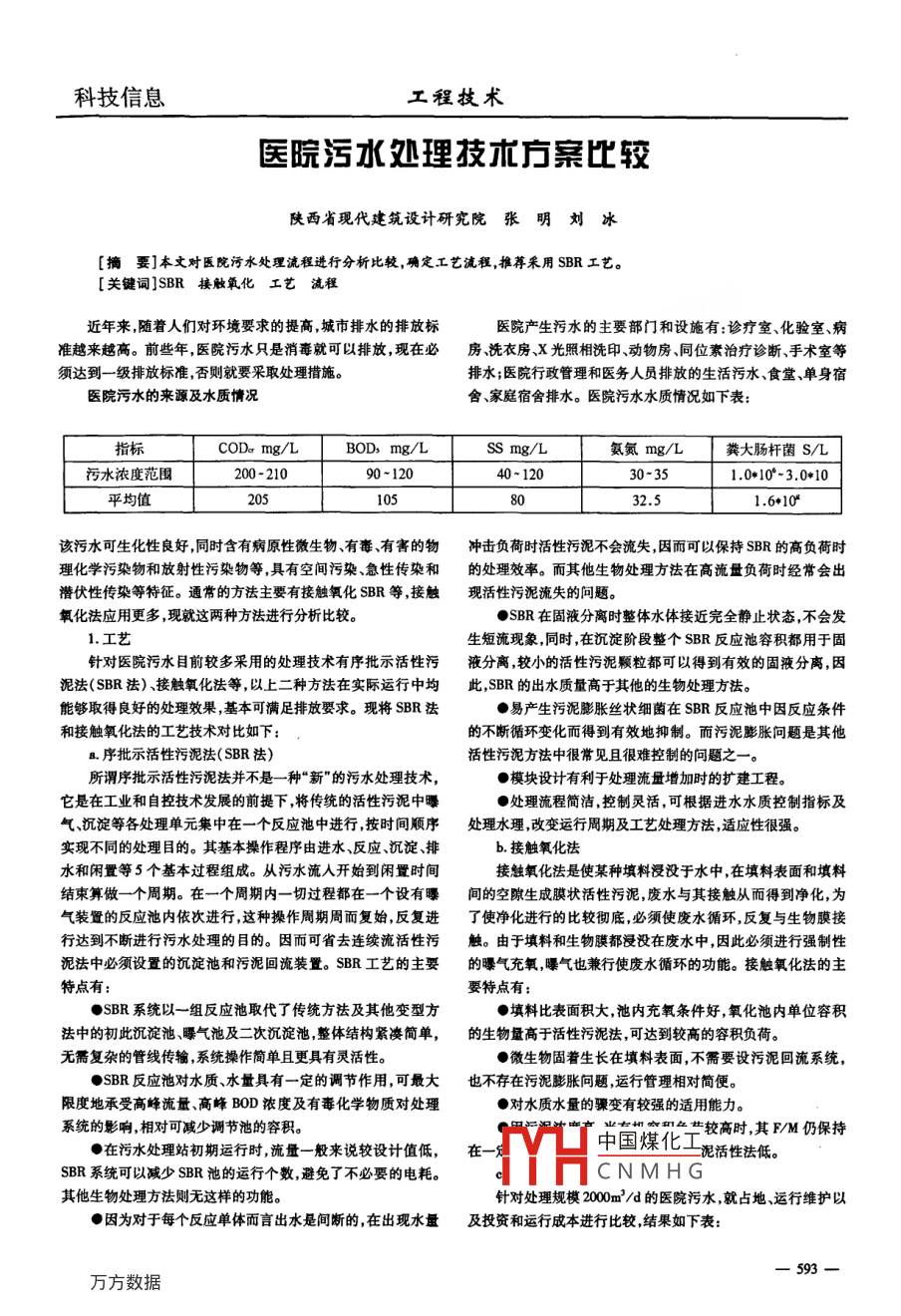 科技信息工程技術醫(yī)院污水處理技術方案比較陜西省現(xiàn)代建筑設計研究院張明劉冰[摘要]本文對醫(yī)院污水處理流程進行分析比較,確定工藝流程,推薦采用 SBR工藝。. [關鍵詞]SBR 接觸氧化工藝流程近年來,隨著人們對環(huán)境要求的提高,城市排水的排放標醫(yī)院產生污水的主要部門和設施有:診療室化驗室、病準越來越高。前些年,醫(yī)院污水只是消毒就可以排放,現(xiàn)在必房洗衣房X光照相洗印、動物房、同位素治療診斷手術室等須達到- -級排放標準,否則就要采取處理措施。排水;醫(yī)院行政管理和醫(yī)務人員排放的生活污水、食堂、單身宿醫(yī)院污水的來源及水質情況舍、家庭宿舍排水。醫(yī)院污水水質情況如下表:指標CODe mg/LBOD, mg/Lss mg/L氨氮mg/L糞大腸桿菌S/L污水濃度范圍200-21090~ 12040~ 12030~351.0*10*-3.0*10平均值2051058032.1.6*104該污水可生化性良好,同時含有病原性微生物、有毒、有害的物沖擊負荷時活性污泥不會流失,因而可以保持SBR的高負荷時理化學污染物和放射性污染物等,具有空間污染、急性傳染和的處理效率。而其他生物處理方法在高流量負荷時經常會出潛伏性傳染等特征。邇常的方法主要有接觸氧化SBR等,接觸現(xiàn)活性污泥流失的問題。氧化法應用更多,現(xiàn)就這兩種方法進行分析比較?!馭BR在固液分離時整體水體接近完全靜止狀態(tài),不會發(fā)1.工藝生短流現(xiàn)象,同時,在沉淀階段整個SBR反應池容積都用于固針對醫(yī)院污水目前較多采用的處理技術有序批示活性污液分離,較小的活性污泥顆粒都可以得到有效的固液分離,因泥法(SBR法)、接觸氧化法等,以上二種方法在實際運行中均此,SBR的出水質量高于其他的生物處理方法。能夠取得良好的處理效果,基本可滿足排放要求?,F(xiàn)將SBR法●易產生污泥膨脹絲狀細菌在SBR反應池中因反應條件和接觸氧化法的工藝技術對比如下:的不斷循環(huán)變化而得到有效地抑制。而污泥膨脹問題是其他8.序批示活性污泥法(SBR法)活性污泥方法中很常見且很難控制的問題之- - 。所謂序批示活性污泥法并不是一-種“新"的污水處理技術,●模塊設計有利于處理流量增加時的擴建工程。它是在工業(yè)和自控技術發(fā)展的前提下,將傳統(tǒng)的活性污泥中曝●處理流程簡潔,控制靈活,可根據進水水質控制指標及氣、沉淀等各處理單元集中在- -個反應池中進行,按時間順序處理水理,改變運行周期及工藝處理方法,適應性很強。實現(xiàn)不同的處理目的。其基本操作程序由進水、反應、沉淀、排b.接觸氧化法水和閑置等5個基本過程組成。從污水流人開始到閑置時間接觸氧化法是使某種填料浸沒于水中,在填料表面和填料結束算做-一個周期。在一個周期內-切過程都在一-個設有曝間的空院生成膜狀活性污泥,廢水與其接觸從而得到凈化,為氣裝置的反應池內依次進行,這種操作周期周而復始,反復進了使凈化進行的比較徹底,必須使廢水循環(huán),反復與生物膜接行達到不斷進行污水處理的目的。因而可省去連續(xù)流活性污觸。由于填料和生物膜都浸沒在廢水中,因此必須進行強制性泥法中必須設置的沉淀池和污泥回流裝置。SBR 工藝的主要的曝氣充氧,曝氣也兼行使廢水循環(huán)的功能。接觸氧化法的主特點有:要特點有:●SBR系統(tǒng)以-組反應池取代了傳統(tǒng)方法及其他變型方●填料比表面積大,池內充氧條件好,氧化池內單位容積法中的初此沉淀池、曝氣池及二次沉淀池,整體結構緊湊簡單,的生物量高于活性污泥法,可達到較高的容積負荷。無需復雜的管線傳輸,系統(tǒng)操作簡單且更具有靈活性?!裎⑸锕讨L在填料表面,不需要設污泥回流系統(tǒng),●SBR反應池對水質水量具有一定的調節(jié)作用,可最大也不存在污泥膨脹問題,運行管理相對簡便。限度地承受高峰流量、高峰BOD濃度及有毒化學物質對處理●對水質水量的驟變有較強的適用能力。系統(tǒng)的影響,相對可減少調節(jié)池的容積。較高時,其F/M仍保持●在污水處理站初期運行時,流量-般來說較設計值低,在- s中國煤化工泥活性法低。SBR系統(tǒng)可以減少SBR池的運行個數,避免了不必要的電耗。YHCNMHG其他生物處理方法則無這樣的功能。針對處理規(guī)模2000m’/d的醫(yī)院污水,就占地、運行維護以●因為對于每個反應單體而言出水是間斷的,在出現(xiàn)水量及投資 和運行成本進行比較,結果如下表:一593-科技信息工程技術、方案SBR工藝接觸氧化法項目1.處理流程簡單,構筑物少,占地面積少,基建1、 抗沖擊負荷能力高,運行穩(wěn)定。投資小,運行費省。2、容積負荷高,占地面積小。2.污泥沉降性能較好,使出水水質得以保證。3.污泥產量較低,無需污泥回流。優(yōu)點3.采用程序控制可進行除磷脫氮工藝。4、運行管理相對簡單。4.操作靈便,運行方式較多。5、對操作人員的素質要求一般。5.抗沖擊負荷強6、停留時間較長,污泥較穩(wěn)定。6.需要配置的運行人員少,甚至可達到無人職守。1.要求自控程序較高。1.脫落的細碎生物膜,沉淀性能差,使出水懸浮物時有2.對操作人員的素質要求較高。超標,須投加絮凝劑改善沉淀性能。3.周期運行,設備閑置率較高2.填料固定于曝氣池內,需要較多的填料支承結構,施缺點4.要求有較大氣水比。工和今后的維修更換麻煩。3、要求有較大氣水比。.4、除磷脫氮