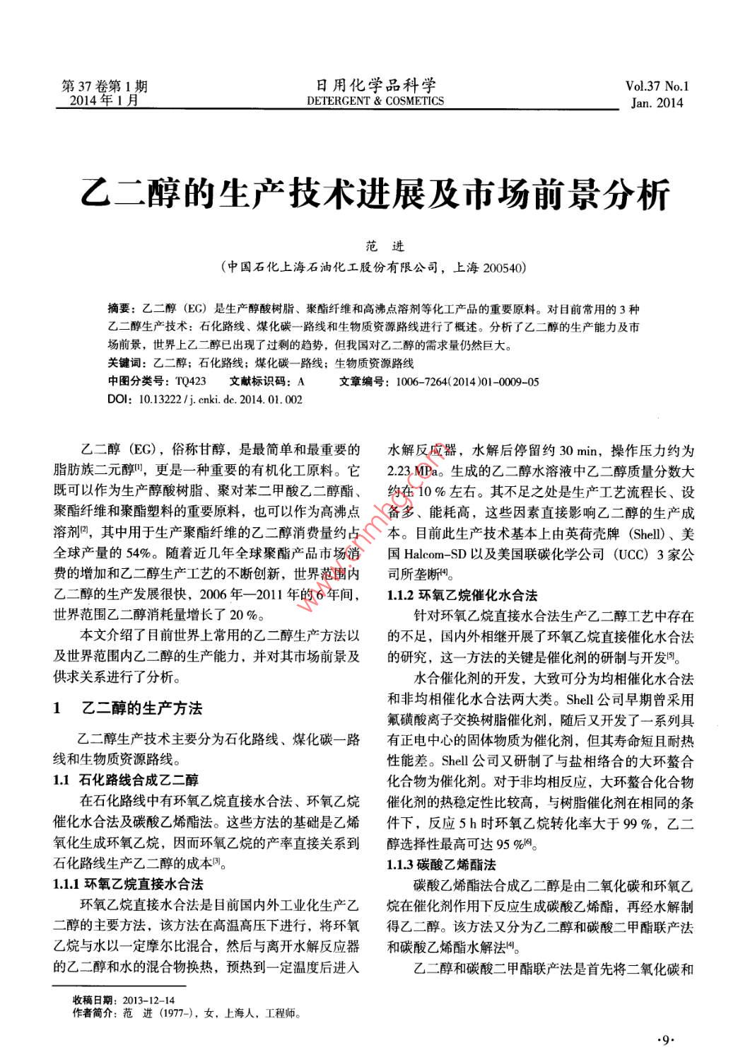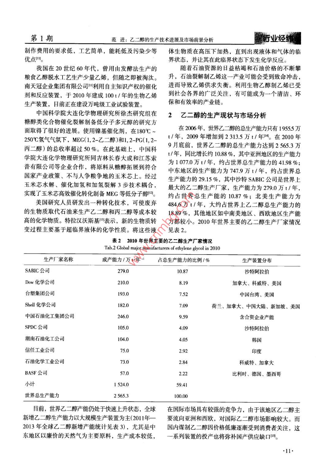 乙二醇的生產(chǎn)技術(shù)進(jìn)展及市場(chǎng)前景分析