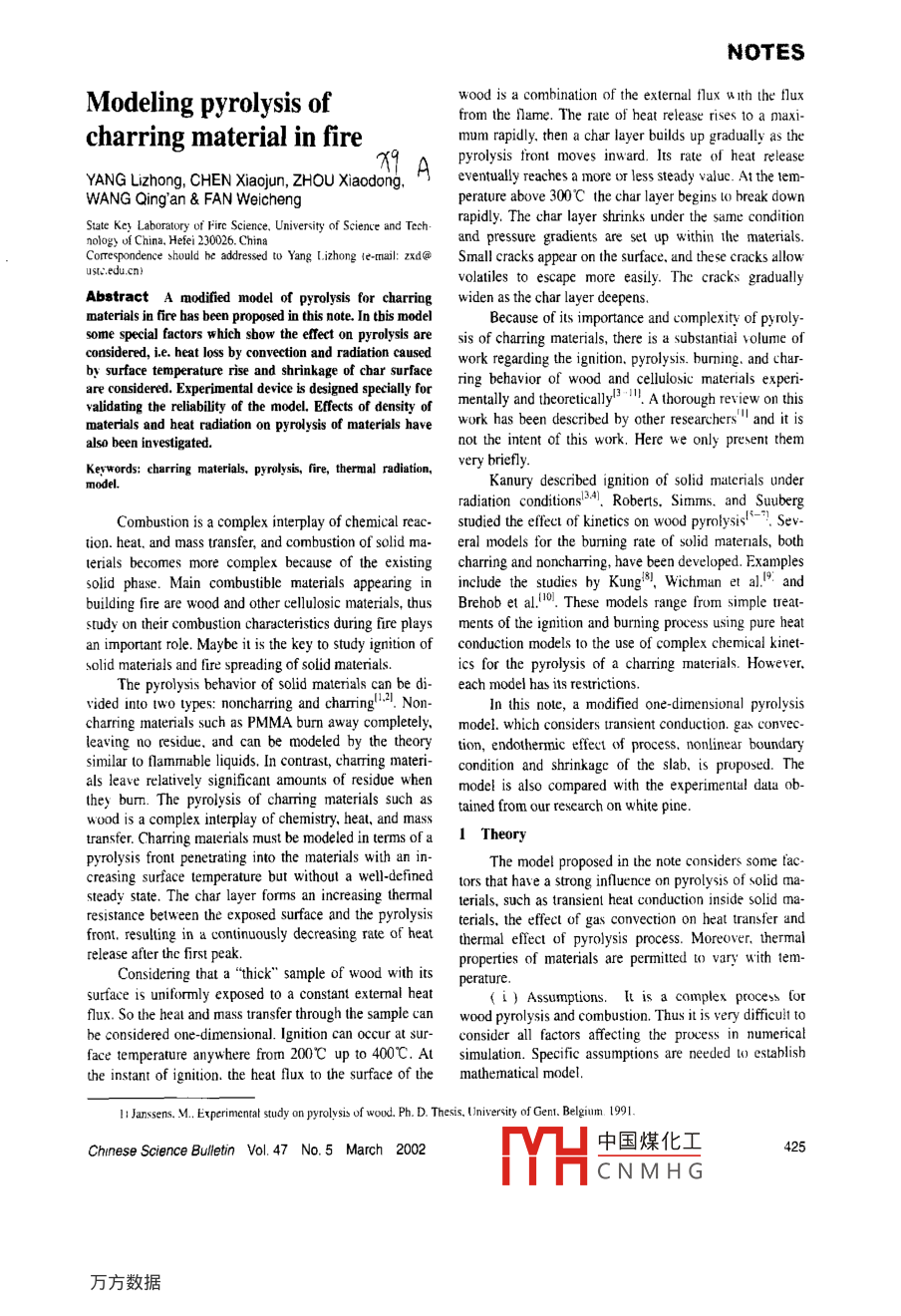 - 作者單位:State Key Laboratory of Fire Science