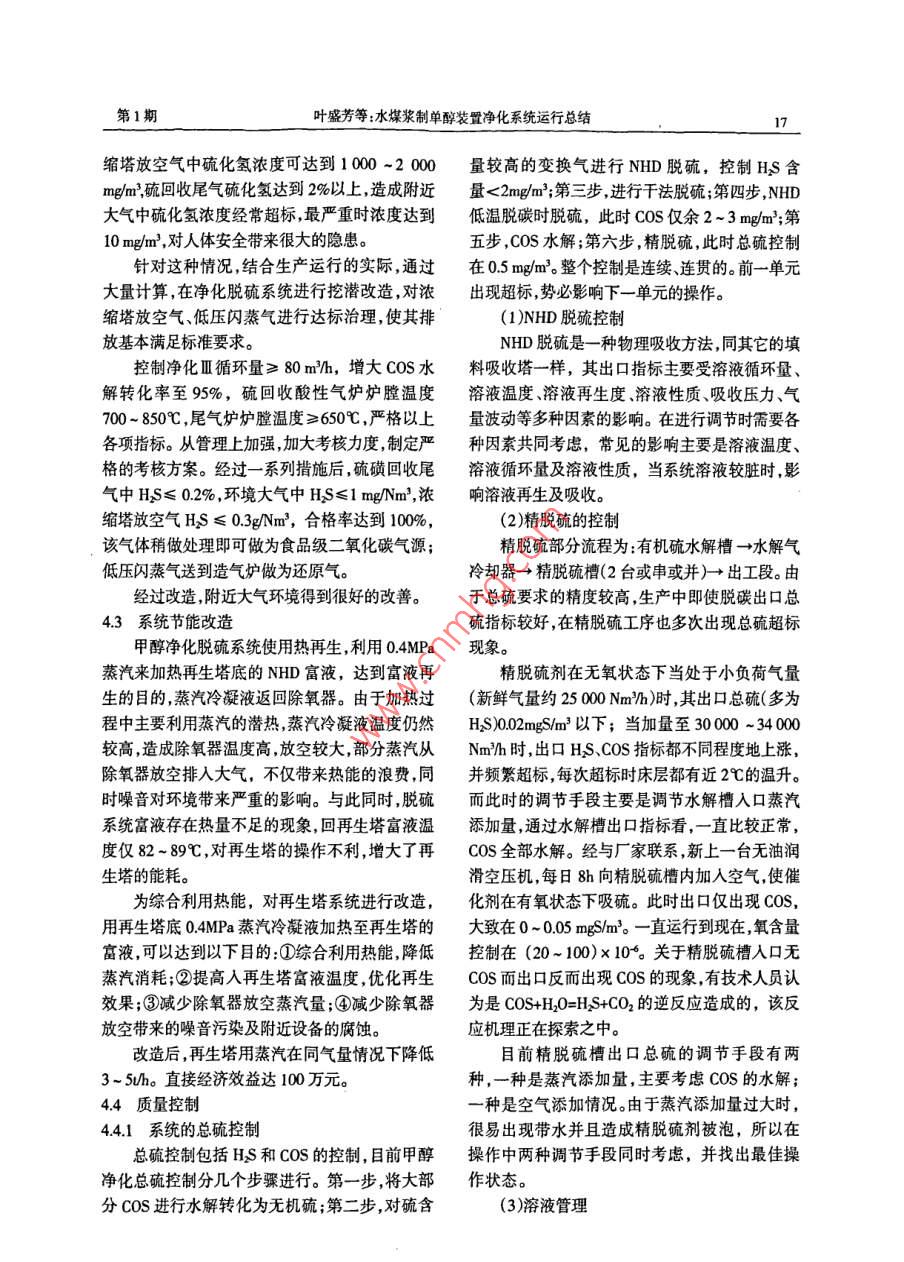 水煤漿制單醇裝置凈化系統(tǒng)運行總結(jié)