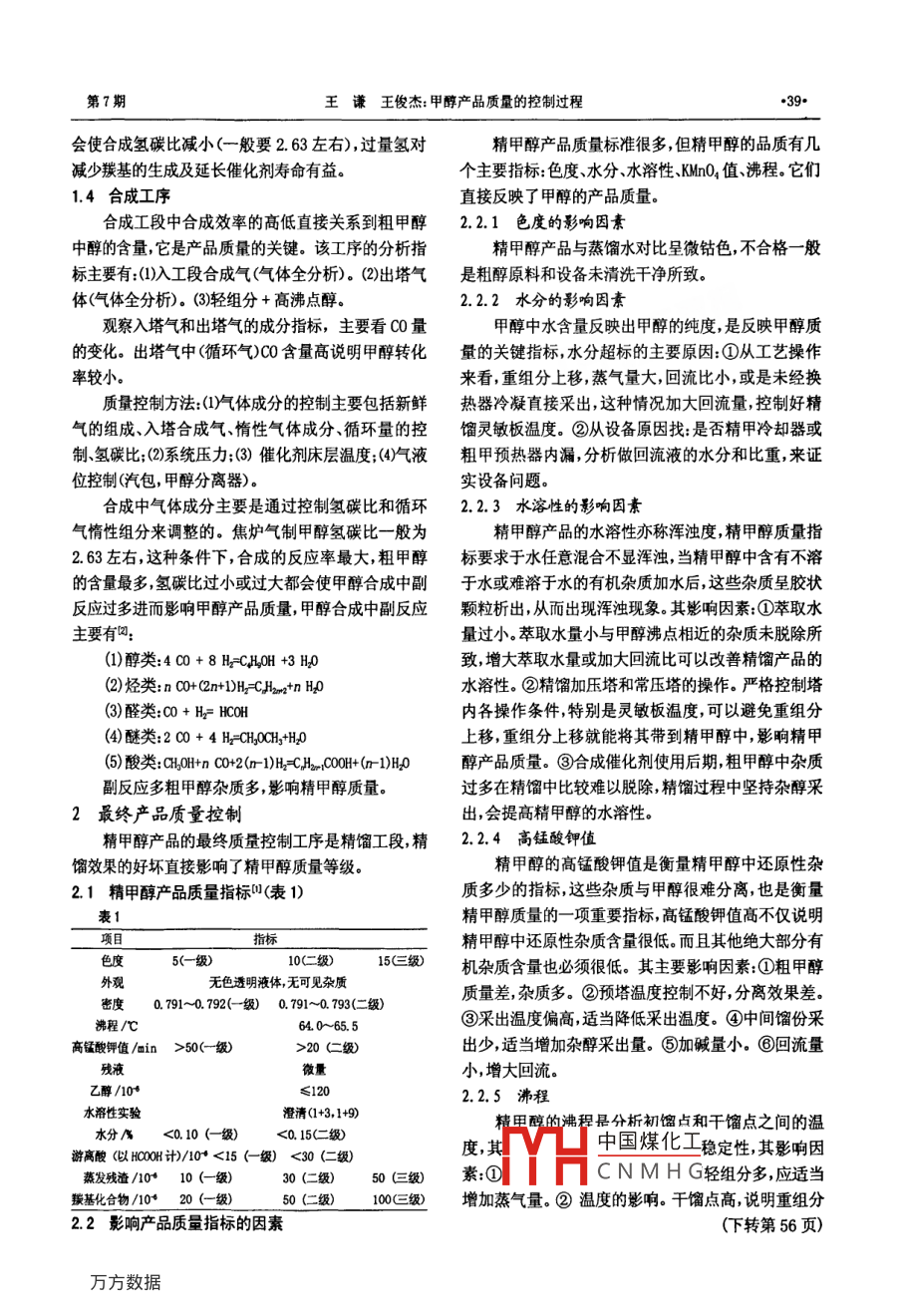 甲醇產(chǎn)品質(zhì)量的控制過程