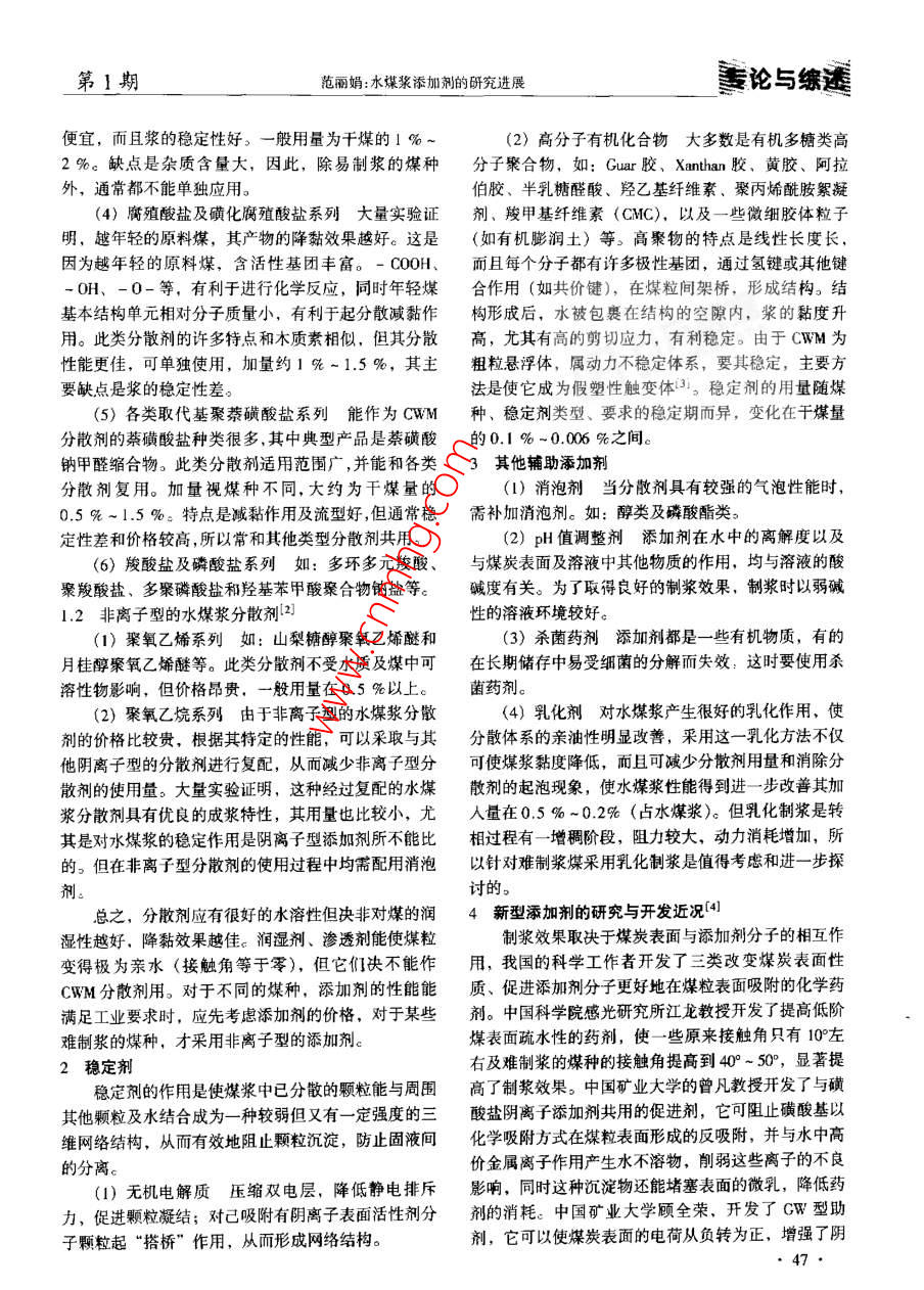 水煤漿添加劑的研究進(jìn)展