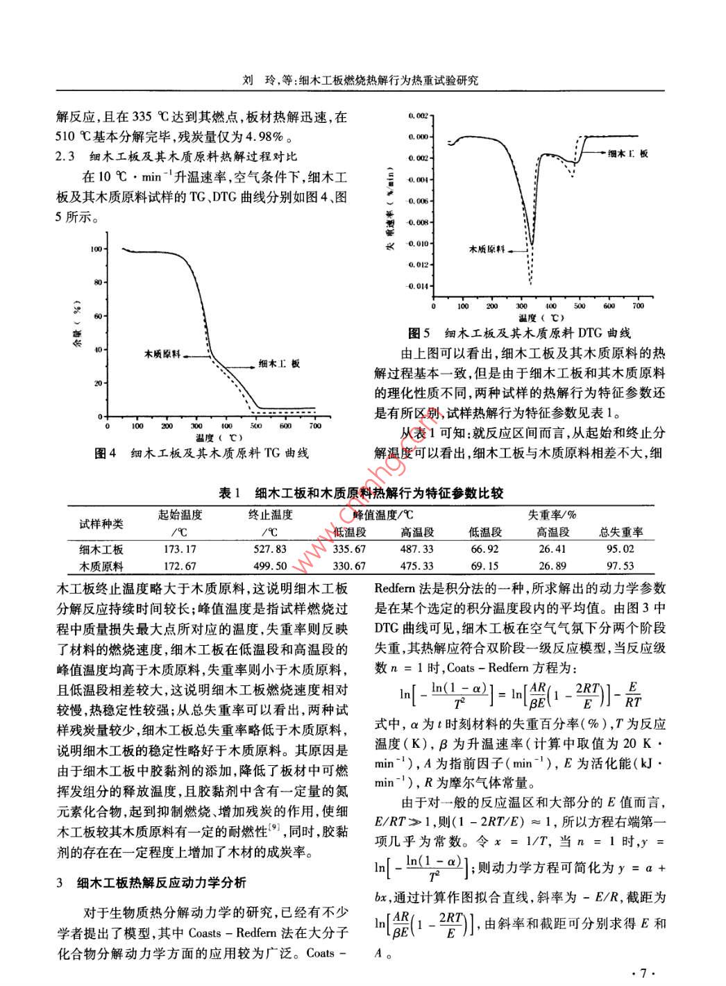 細木工板燃燒熱解行為熱重試驗研究