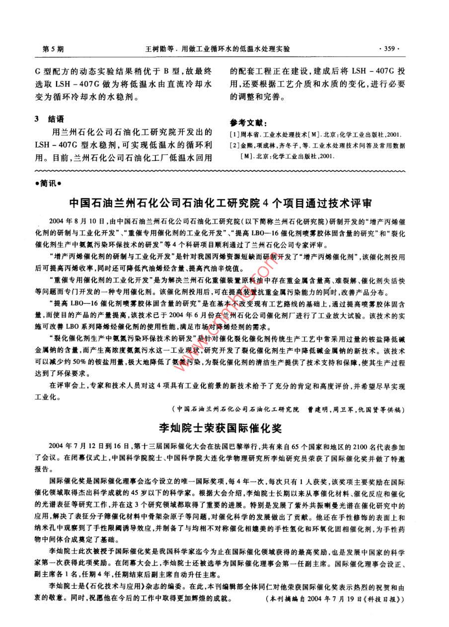 用做工業(yè)循環(huán)水的低溫水處理實驗