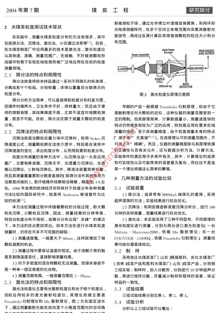水煤漿粒度測試技術(shù)的比較研究