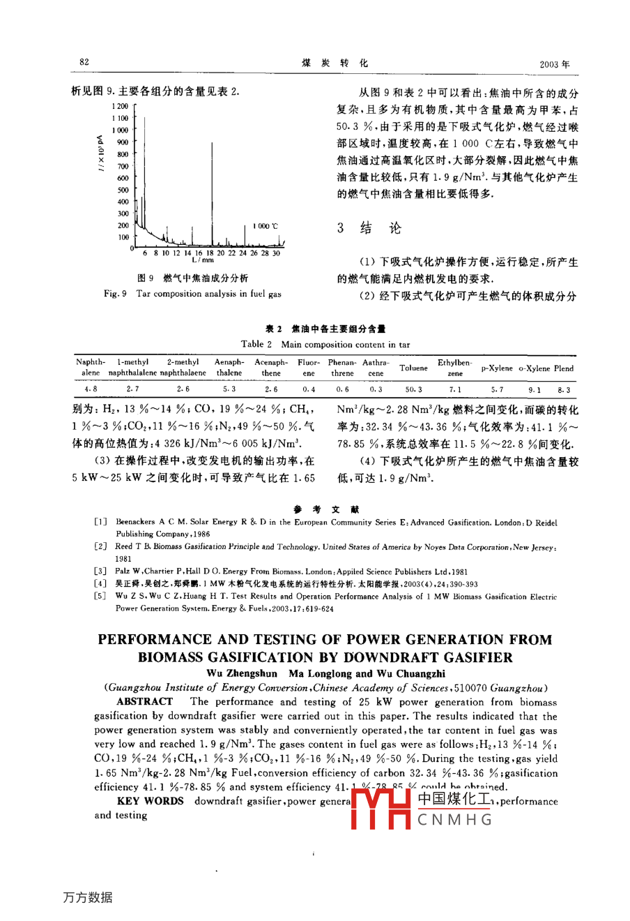 下吸式氣化爐中生物質(zhì)氣化發(fā)電的運行與測試