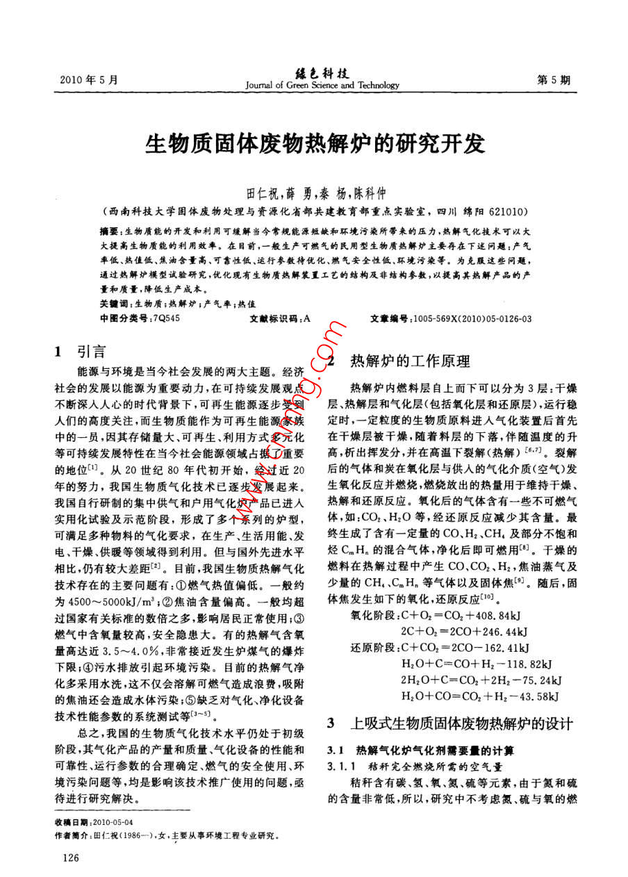 生物質(zhì)固體廢物熱解爐的研究開發(fā)