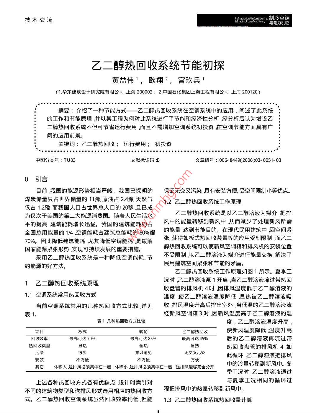 乙二醇熱回收系統(tǒng)節(jié)能初探