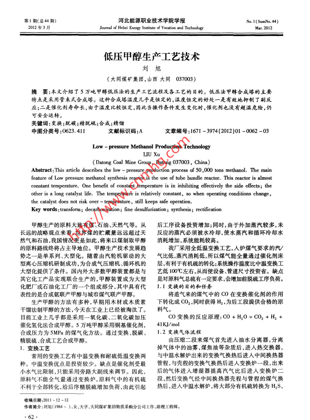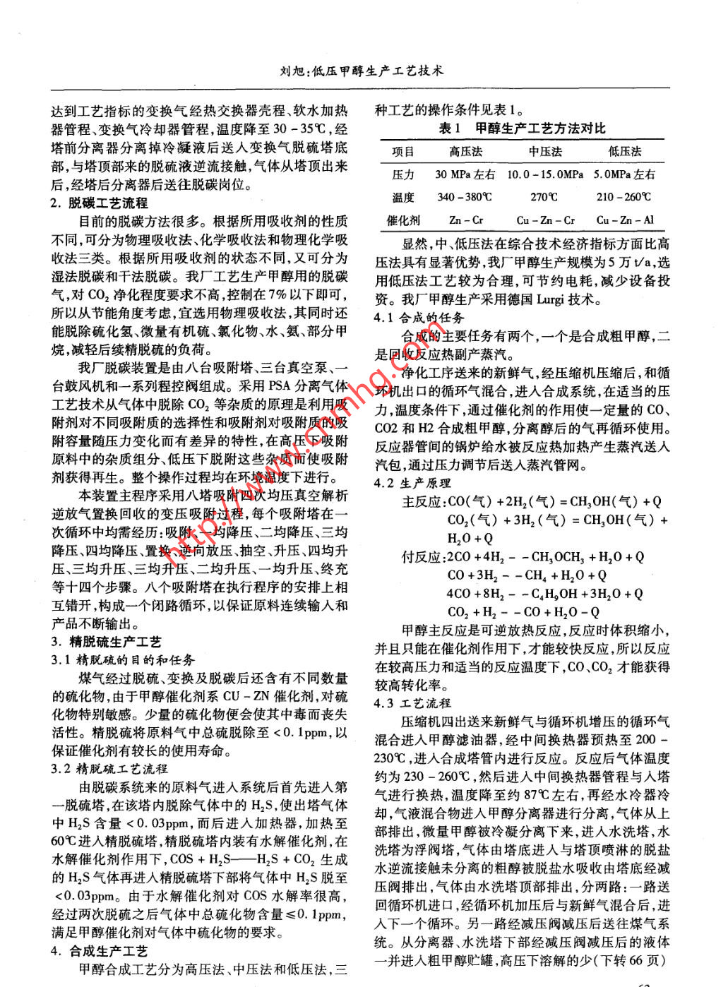 低壓甲醇生產(chǎn)工藝技術