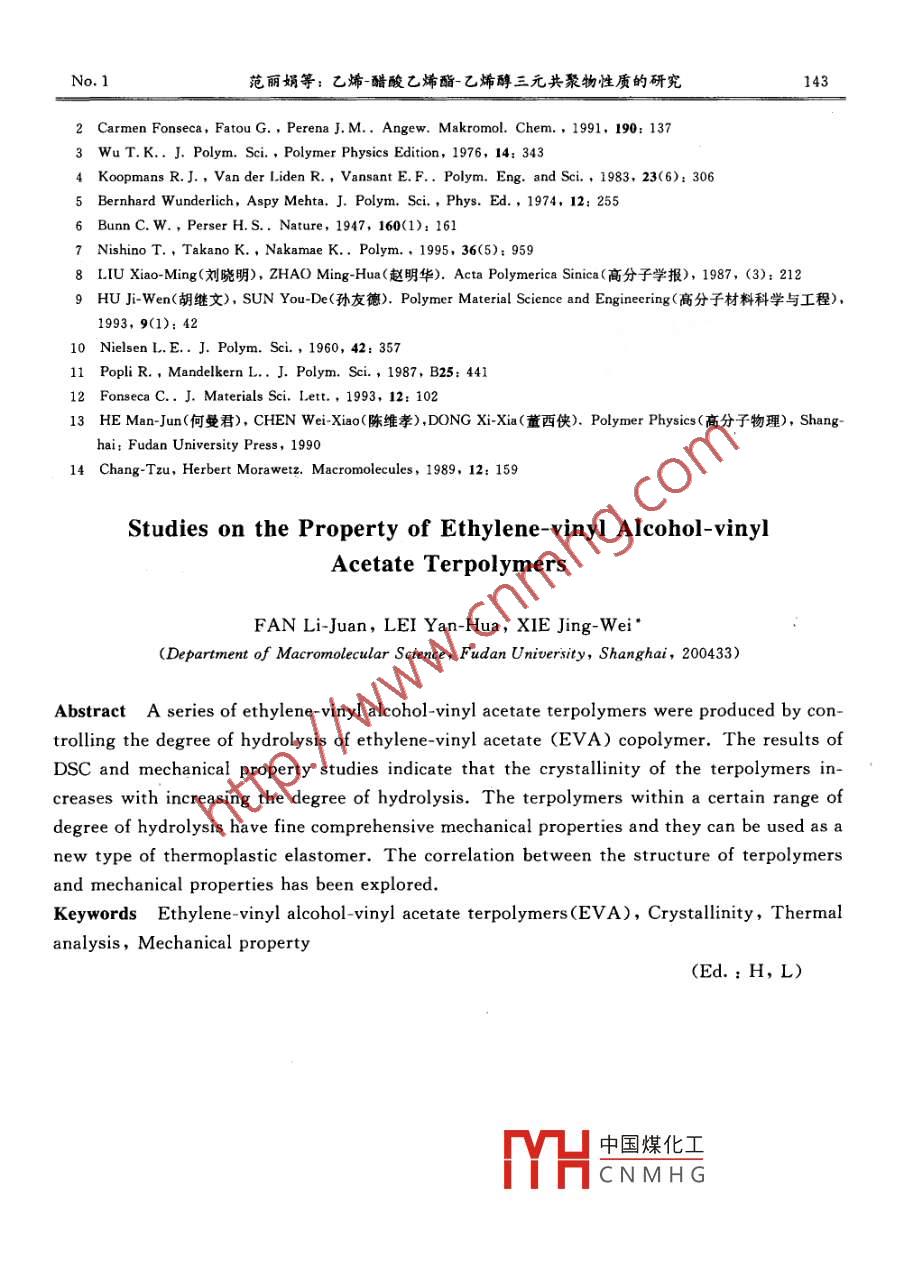 乙烯-醋酸乙烯酯-乙烯醇三元共聚物性質(zhì)的研究