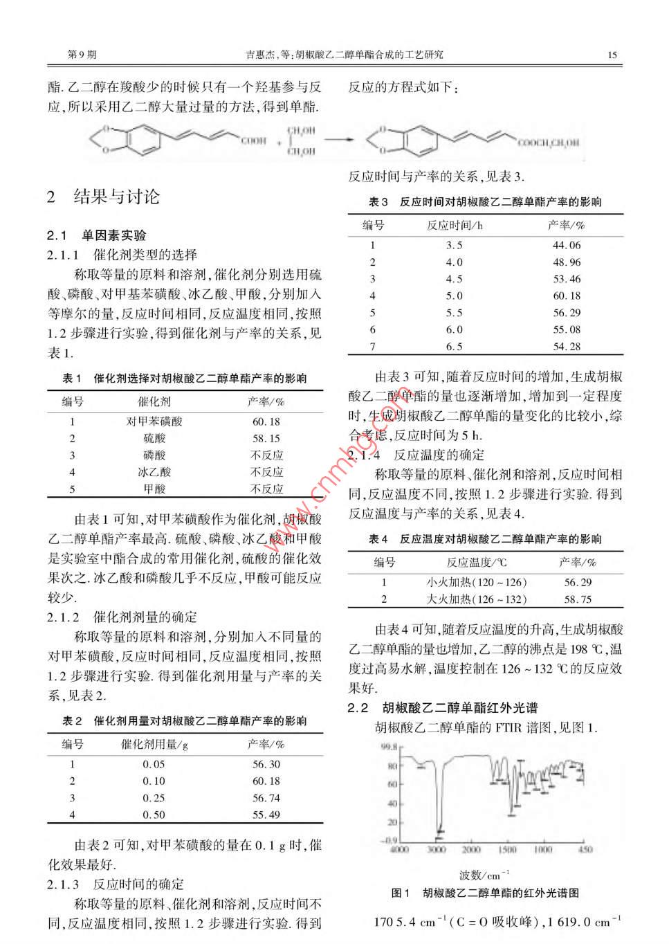 胡椒酸乙二醇單酯合成的工藝研究