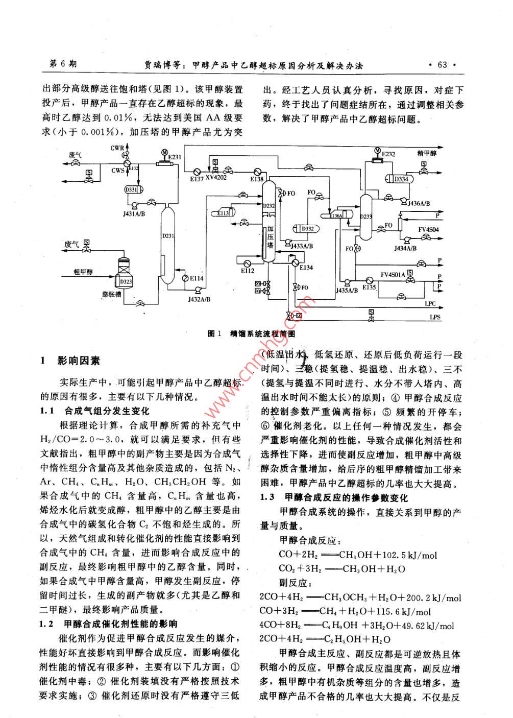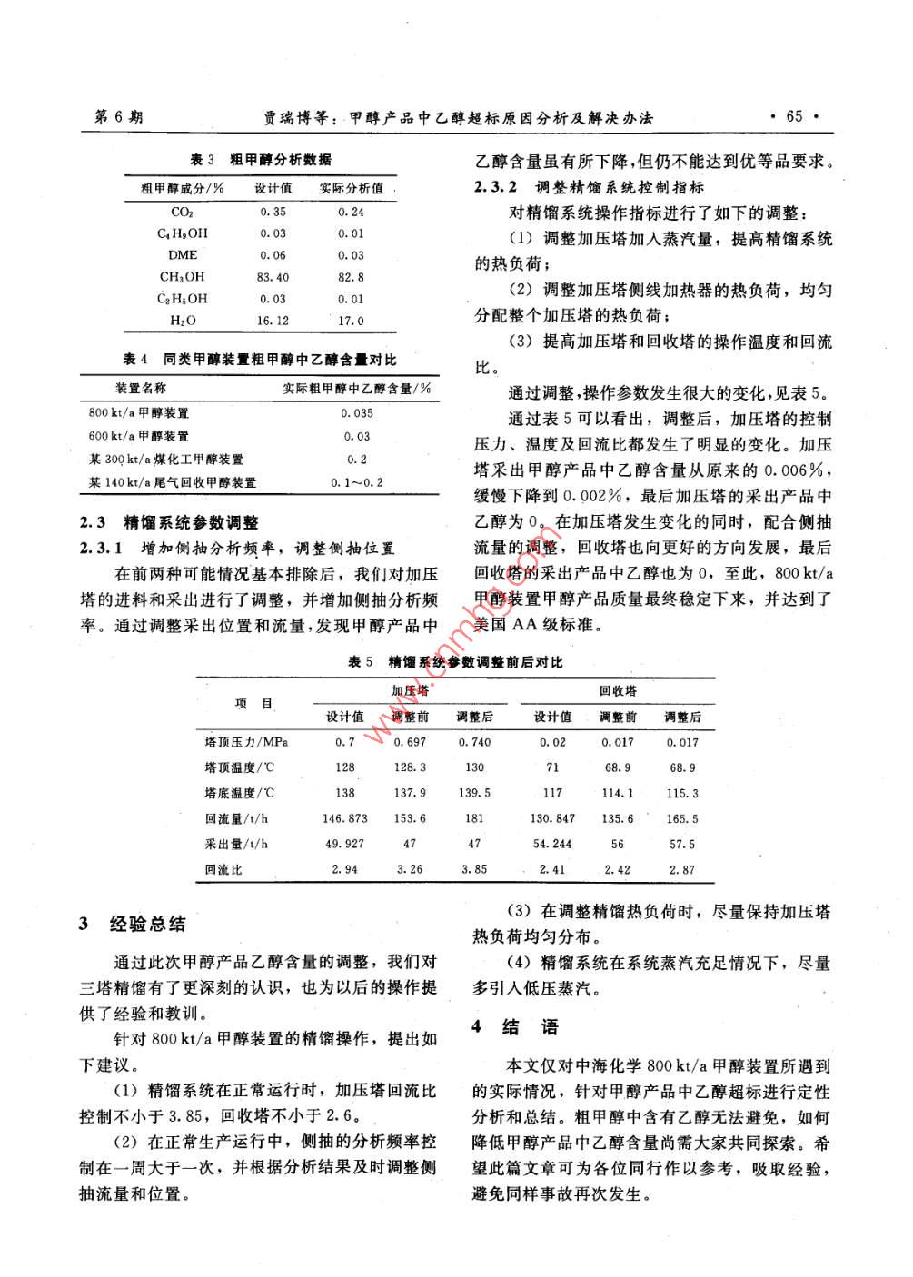 甲醇產(chǎn)品中乙醇超標原因分析及解決辦法