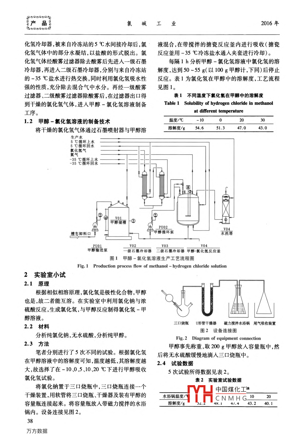 采用低溫吸收法生產(chǎn)甲醇-氯化氫溶液