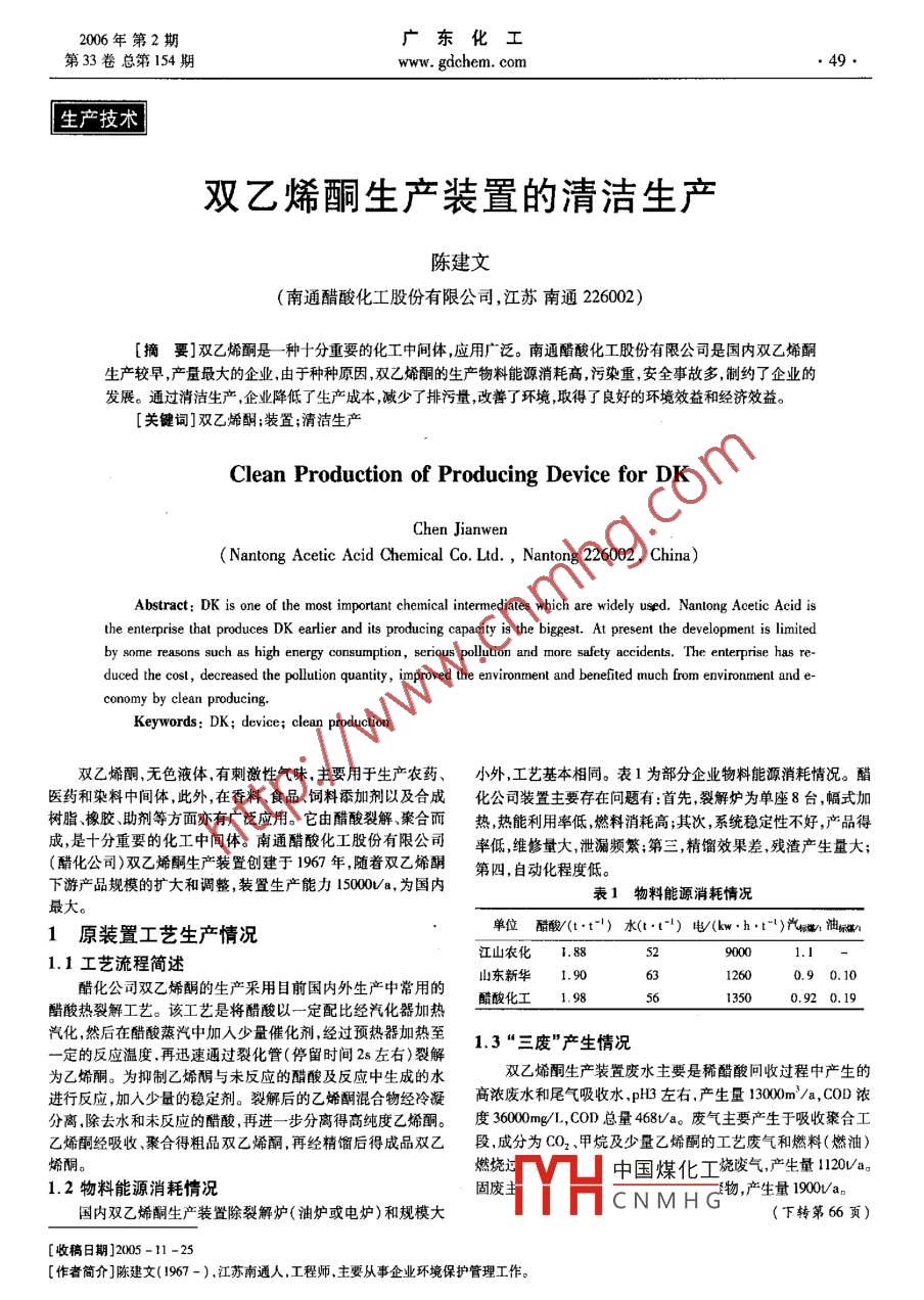 雙乙烯酮生產(chǎn)裝置的清潔生產(chǎn)