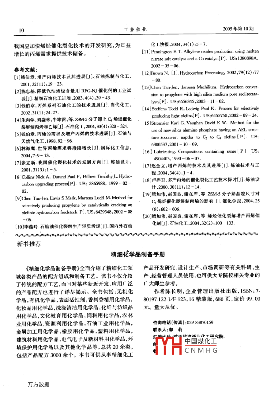 C4烯烴制丙烯催化劑 2020-06-12