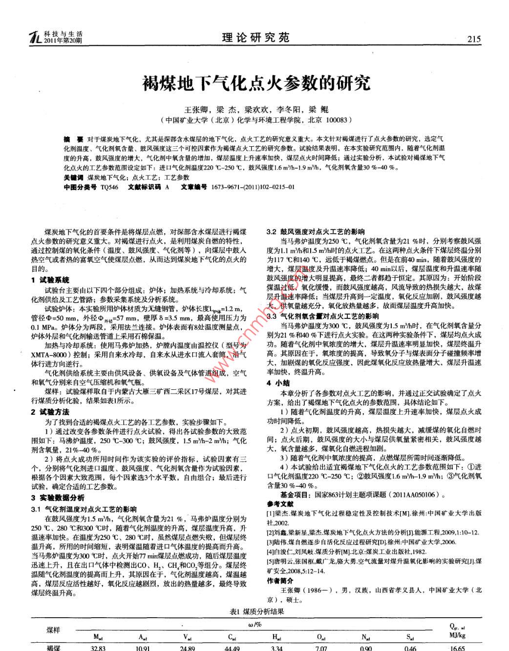 褐煤地下氣化點(diǎn)火參數(shù)的研究
