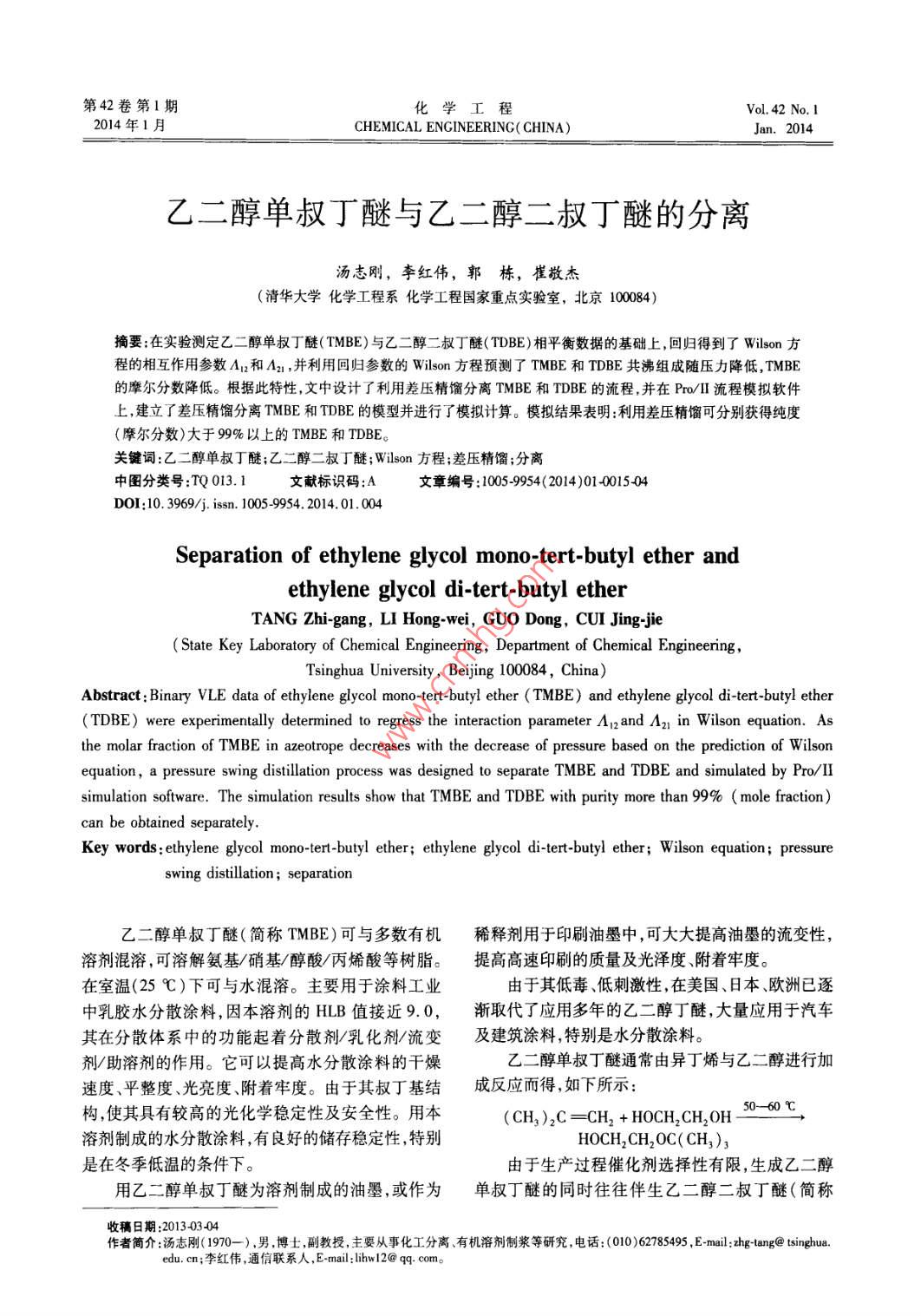 - 期刊名字:化學(xué)工程