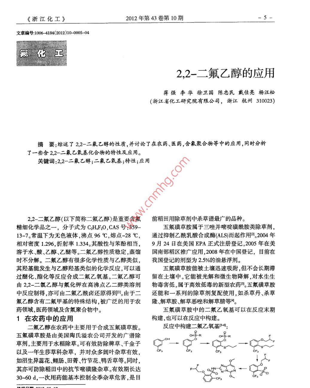 - 期刊名字:浙江化工