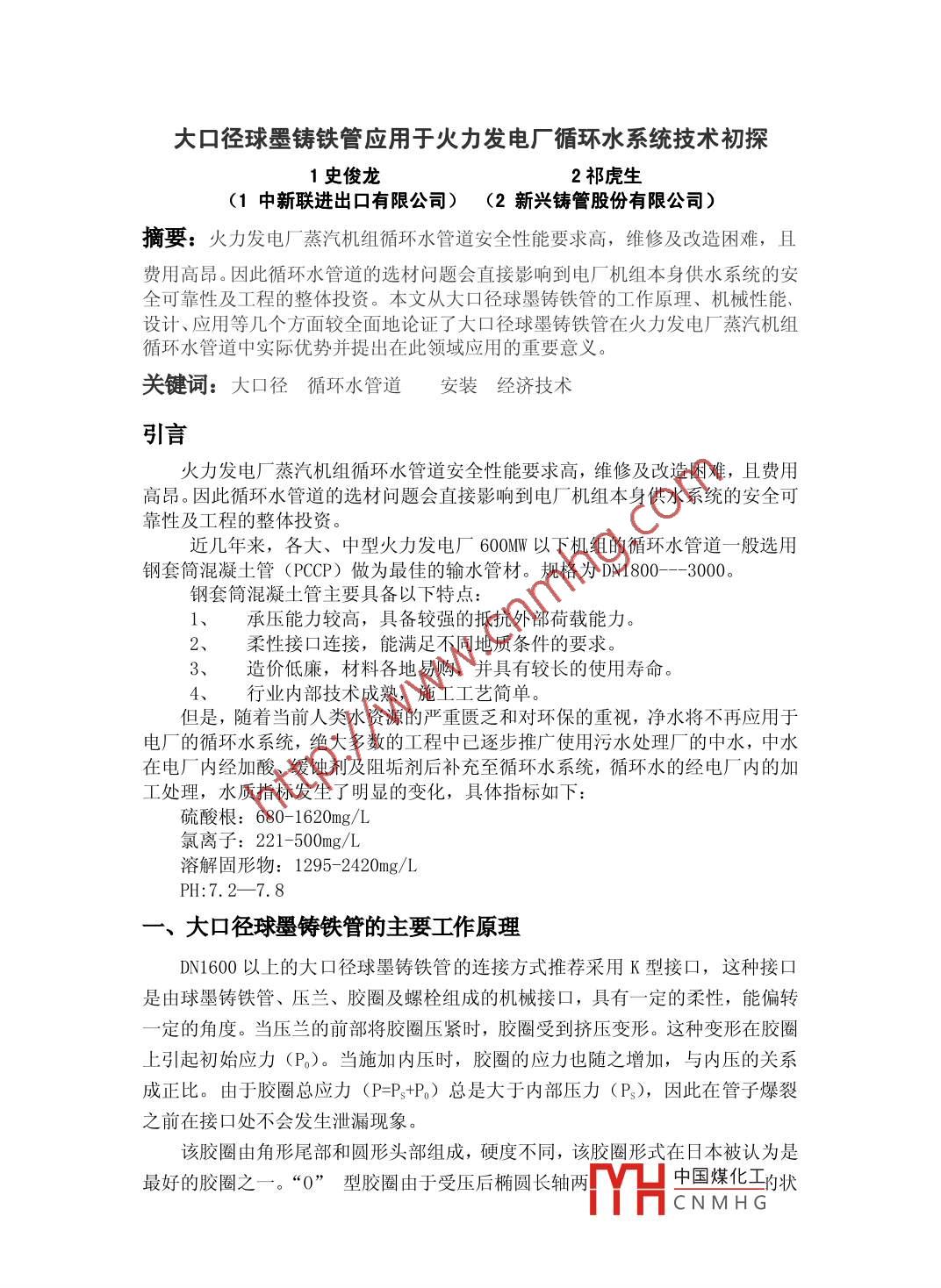 大口徑球墨鑄鐵管應(yīng)用于火力發(fā)電廠循環(huán)水系統(tǒng)技術(shù)初探