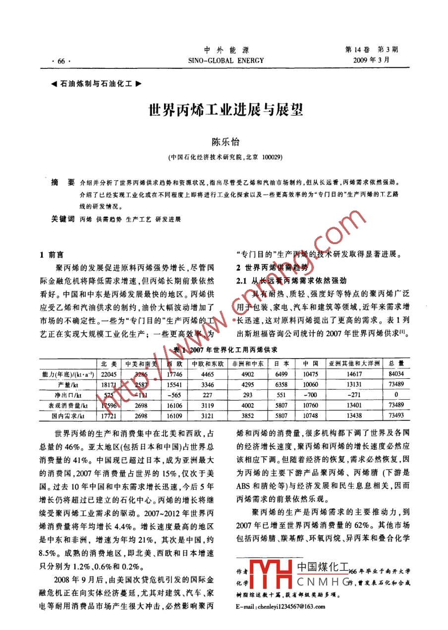 世界丙烯工業(yè)進(jìn)展與展望