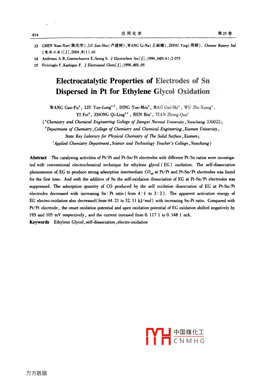 Pt-Sn/Pt電極對乙二醇的電催化氧化