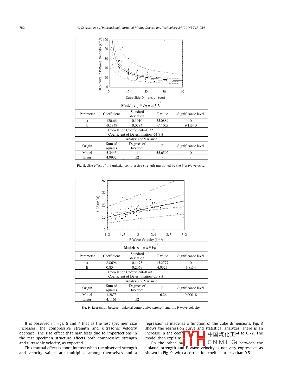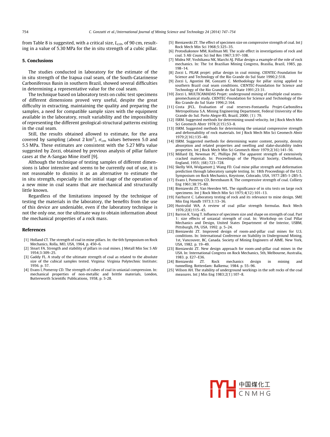 International Journal of Mining Science and Technology 24(2014)74Contents lists available at Science DirectInternational Journal of Mining Science and TechnologyELSEVIERurnalhomepagewww.elsevier.com/locate/ijmstIn situ strength of coal bed based on the size effect study on the uniaxial Qcompressive strengthGonzatti C a, Zorzi L., Agostini I.M. Fiorentini J.A., Viero A.P. Philipp r.P. aartment of Mineralogy and Petrography of the Federal University of Rio Grande do Sul, BrazilFoundation for Science and Technology of Rio Grande do Sul State, BrazilARTICLE INFOA BSTRACTArticle historIn the early 1990s, the Foundation for Science and Technology of Rio grandeState(CIENTEC)Received 18 January 2014developed a pioneering study in Brazil, related to the simultaneous mining of multiple coal seamReceived in revised form 10 March 2014Accepted 22 MayOne of the activities included detailed studies on the geomechanical characterization of materials presentAvailable online 14 November 2014in the Irapua coal seam, under exploitation in the A-Sangao Mine, located near the city of Criciuma-SCthe uniaxial compressive strength of the Irapua coal seam and establish a first approximation for theSize effectin situ strength value of this coal seam, since existing knowledge is solely based on practical miningexperience over the years. Large samples of the coal seam were collected using special techniques toCoal seammaintain the integrity of the material, and a set of 56 uniaxial compression tests in cubic specimens, withside length ranging from 4.5 to 31 cm, were conducted in laboratory. This paper describes the experimentechniques used in the assays, and also presents the uniaxial compression strength results obtaineMoreover, important aspects of this type of study are considered, highlighting the size effect for thecarbonaceous bed and the estimation of in situ strength values for the Irapua coal seam.o 2014 Published by elsevier B V on behalf of China University of Mining TechnologyIntroductionIn summary, the size effect implies higher strength values forsamples tested in laboratory, when compared toAlmost all of the scientific production on what is still consid- This increase in strength is attributed to the lower presence ofred the art of scaling pillars in coal mines, originated in the U.S. surfaces of weakness in the samples used in laboratory tests, sinceand South Africa countries, where underground coal mining, by the small dimensions used do not entirely represent the mass thatthe chamber and pillar method, surpassed 90% of the total amouroriginated them.produced until the early 1990s.In the case of carbonaceous rocks the definition of the charac-Considering the two necessary parameters for the analysis of teristic strength of the coal seam is of paramount importance, sincese safety level of a pillar-strength and load-the first is the one that it is the very rock that composes the support structures(pillars)ofas deserved the most attention from many researchers who have the excavations from where the ore is extracted. In this type ofdedicated themselves to this subject, and the latter for practical rock, this is a complex task, since the size effect seems to be evenpurposes, is basically restricted to the application of tributary area more pronounced that in other materials, due to the formationtheorycharacteristics of the coal, as reflected by the presence of smalPillar resistance, defined by the maximum load supported by to large geological structures, such as cleats, bedding planesunit of area, depends on at least three basic elementsfractures, faults and inclusions of material other than coaDifferent techniques for the estimation the in situ strength ofThe size effectthe coal seam can be used. The technique of laboratory tests withThe shape effect;small samples is among the less costly ones from the economicalne properties of the rock that forms the pillar and the host point of view however, it is limited due to the low representationof the lithological variations and structural characteristics of therock mass. When there is access to the coal seam, using largersamples than theinre ic more desirrable andCorresponding author Tel +55 51 98939643tends to substantia中國(guó)煤化工 of the mechanicalE-mail address: gonzatti@ufrgs. br (C. Gonzatti)CNMHGhttp://dx.doiorg/10.1016/j.ijmst.2014.10.0032095-2686 2014 Published by Elsevier B V on behalf of China University of Mining TechnologyC Gonzatti et al /International Journal of Mining Science and Technology 24(2014)747-754behavior of the rock in order to estimate the in situ resistance with addition to serving as a base for the proposal of a methodologyeasonablefor pillar sizing applied to southern Brazil coal seam conditionshe use of laboratory testing technique, with variablee 9]. Once the technique of laboratory tests was defined as the pathsizes, has been done by many researchers worldwide for over chosen for estimating the in situ strength, the representativity of100 years of research Studies on mineral coal have been conducted the samples regarding a particular rock mass is an important factorsince approximately 1875 [1. Steart, based on laboratory testing in for the application of the results in the sizing of the undergroundsmall samples and underground observations, and Gaddy, structures. Generally, the ideal size(theoretical) runs into theindividually studying several layers of American coal, concluded limited operational capacity of the equipment available forthat the strength behavior is inversely proportional to the size of extraction as well as the performance of the laboratory teststhe sample [2, 3 They suggested the following generic function The following topics show the results from studies conductedto explain this behaviorfor the estimation of the in situ strength of the Irapua coal seamof the a-Sangao Mine, located in the South-Catarinense coalfieldin southern Brazil, during the development of MULTICAMADASproject [10 The work perfor
