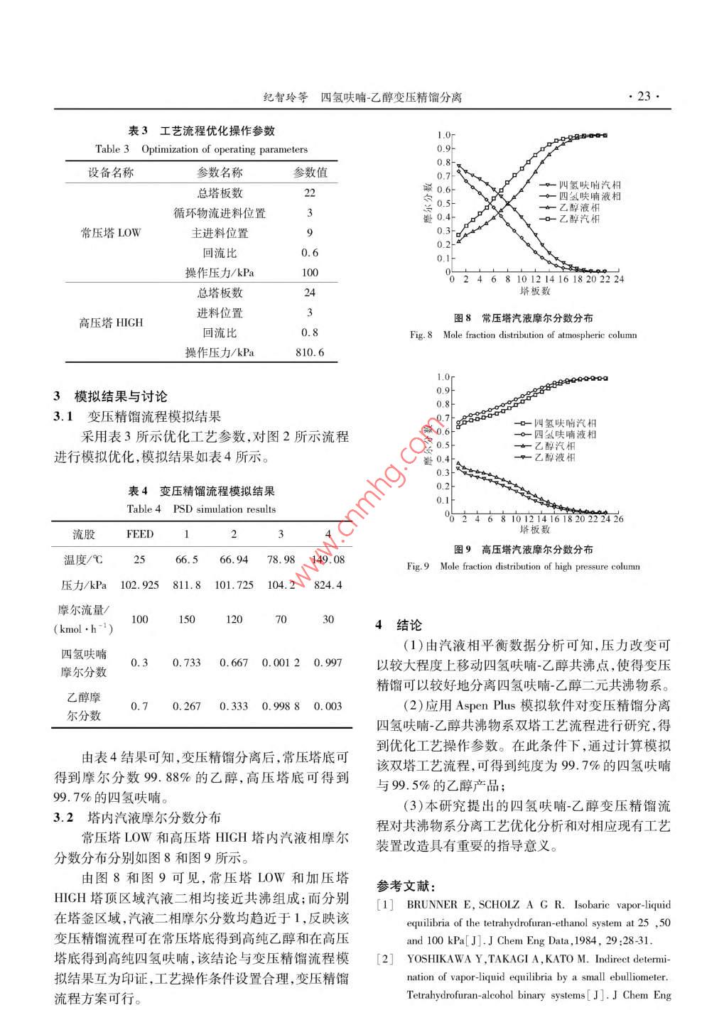 四氫呋喃-乙醇變壓精餾分離
