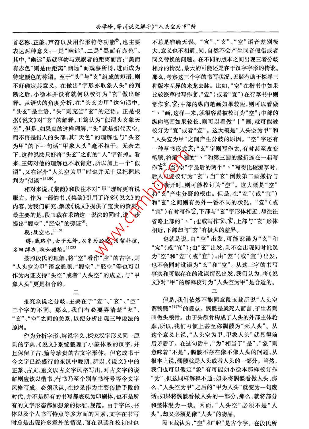 《說(shuō)文解字》“人頭空為甲”辯