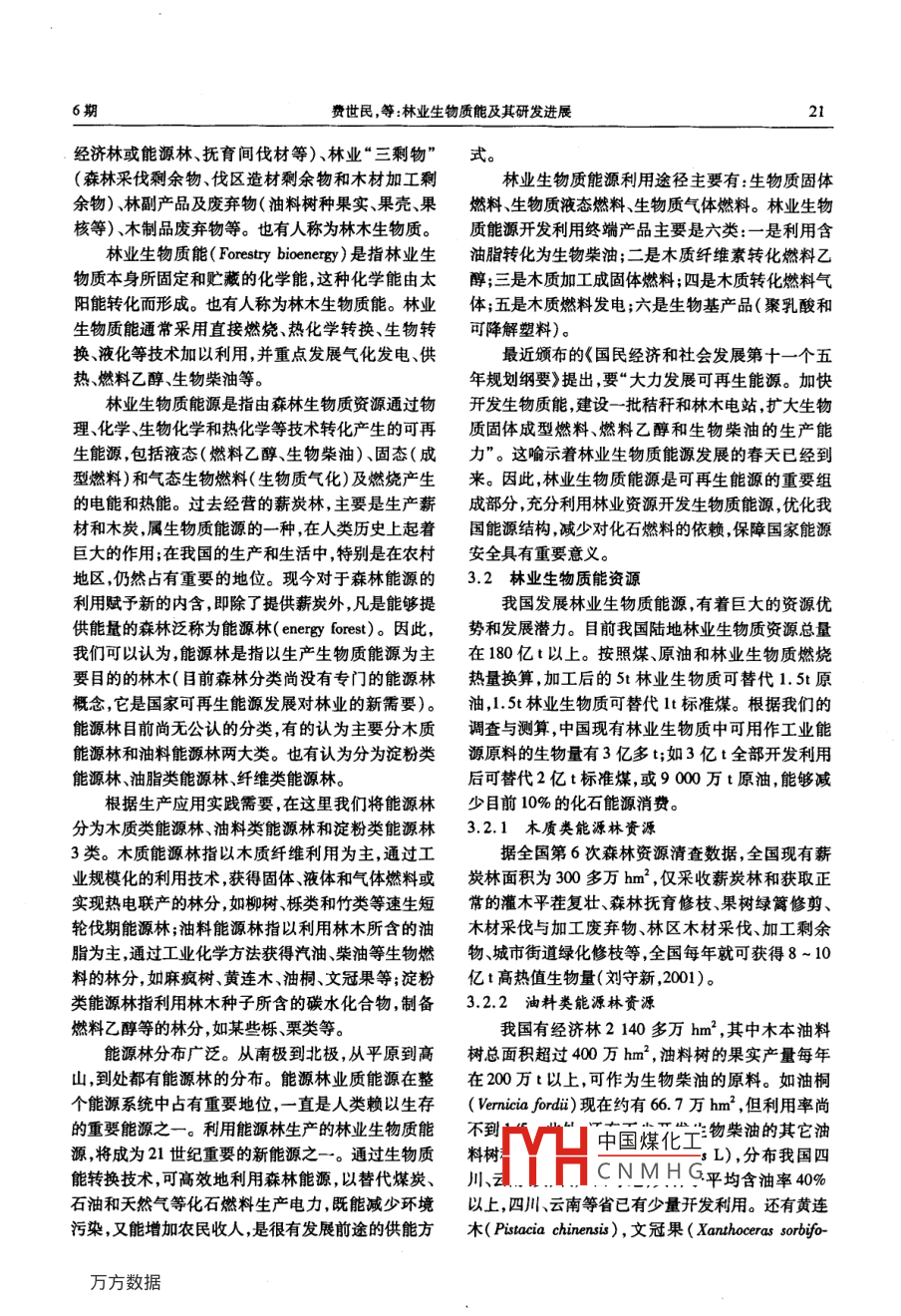 林業(yè)生物質(zhì)能及其研發(fā)進(jìn)展