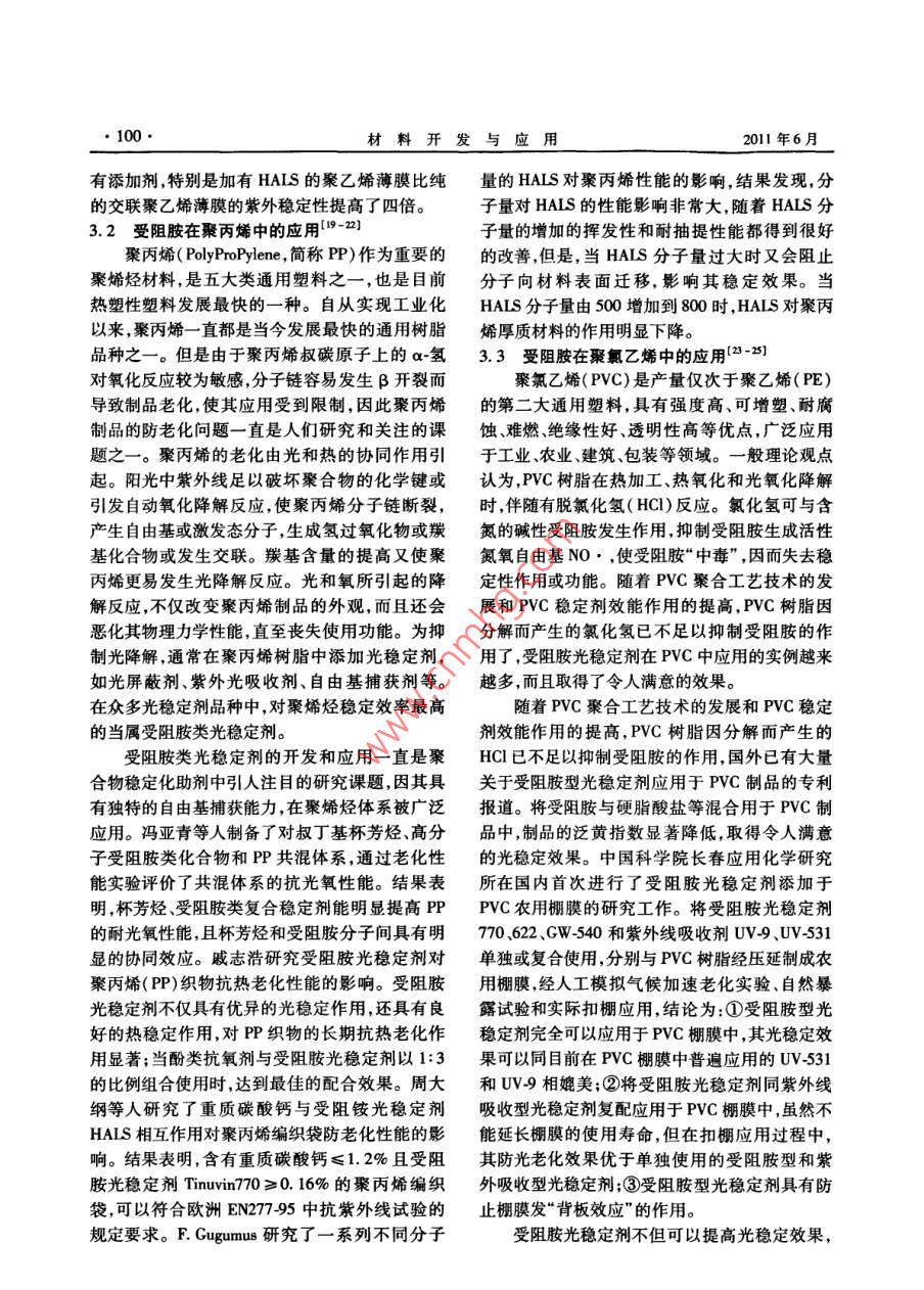 受阻胺在聚烯烴材料中的應(yīng)用研究進(jìn)展