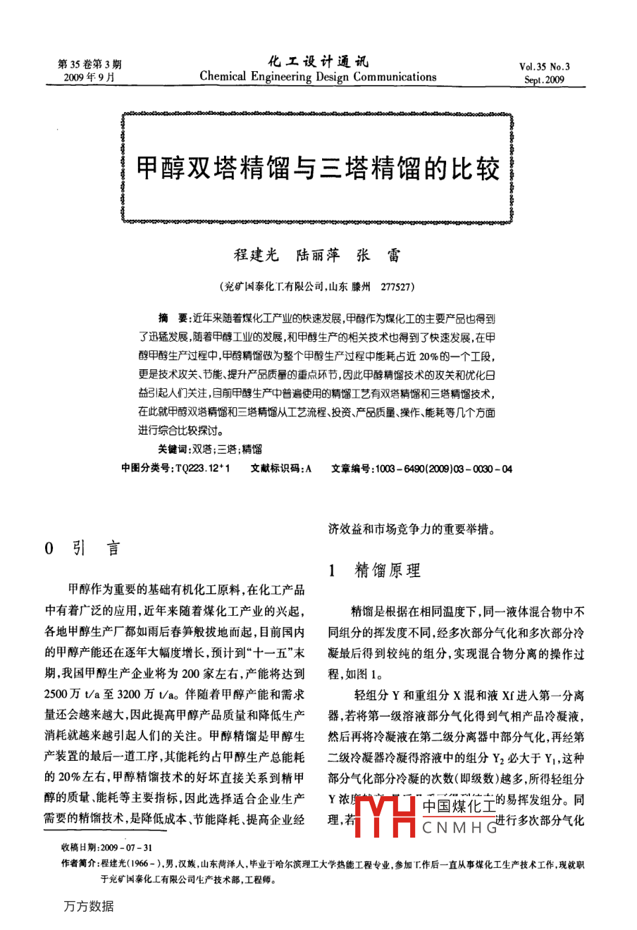 精甲醇及MTO級甲醇精餾工藝技術(shù)進展 2020-06-12
