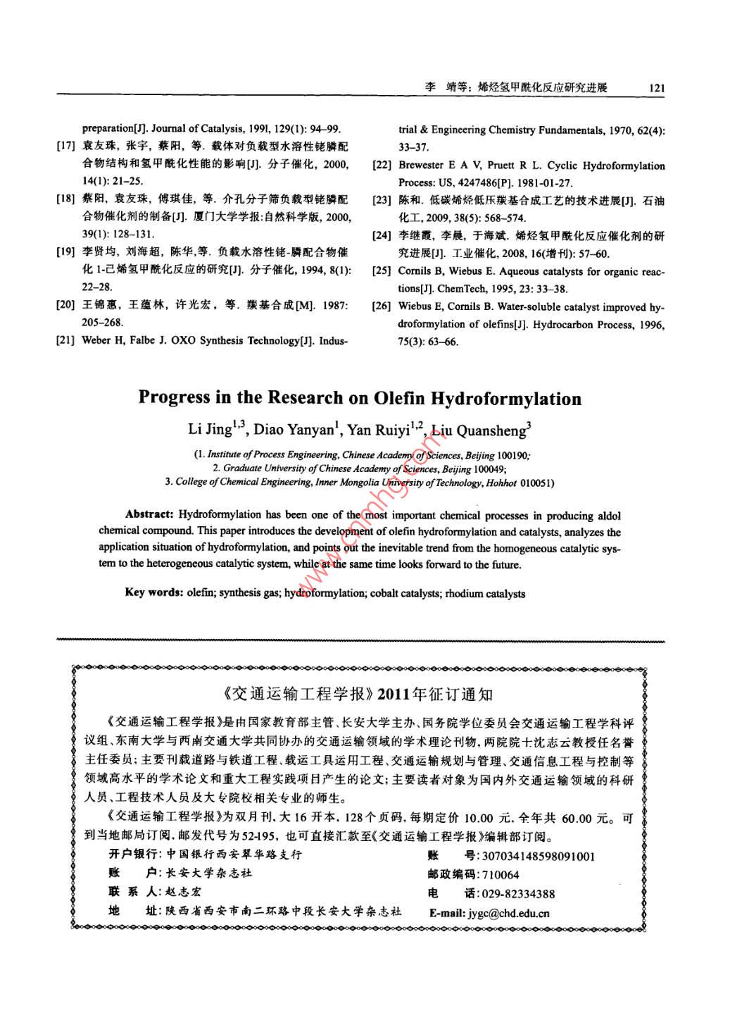 烯烴氫甲?;磻?yīng)研究進(jìn)展 烯烴氫甲酰化反應(yīng)研究進(jìn)展