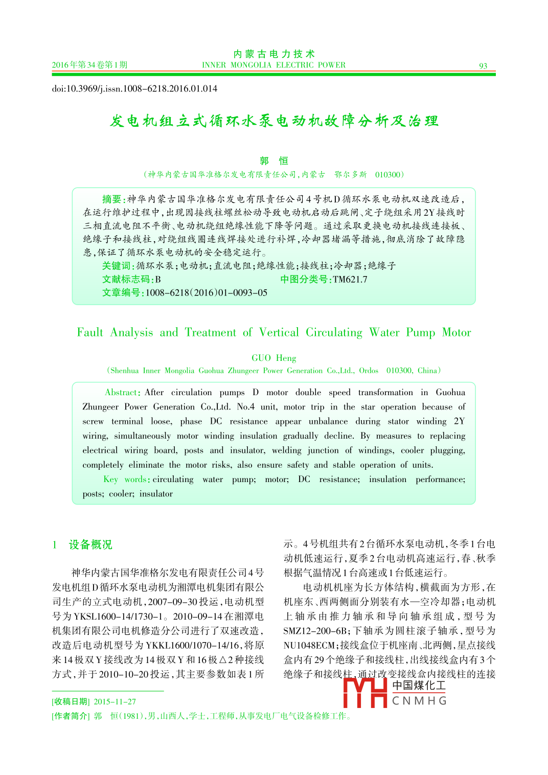 - 期刊名字:內蒙古電力技術