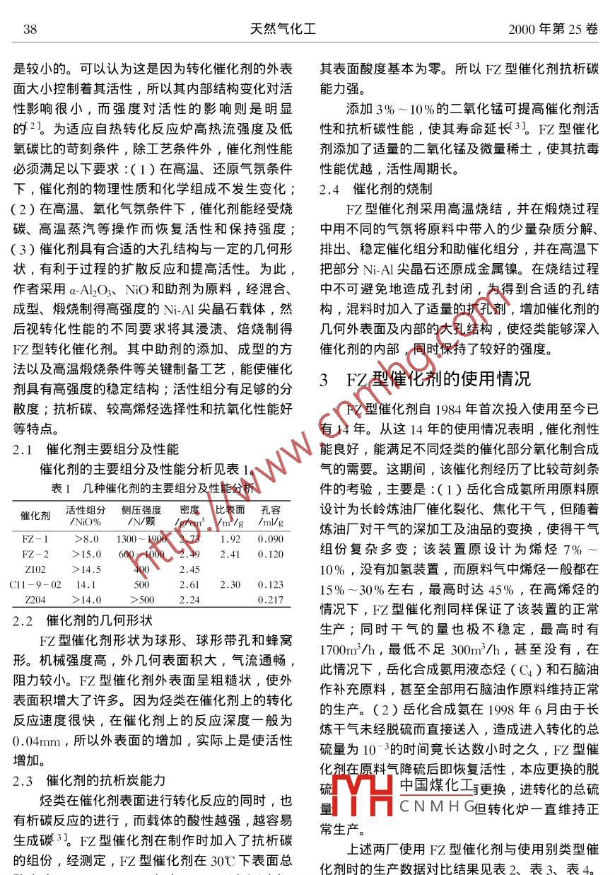 部分氧化制合成氣FZ型催化劑的研制和使用