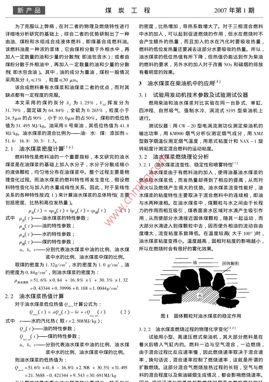 柴油機(jī)替代燃料油水煤漿的研究