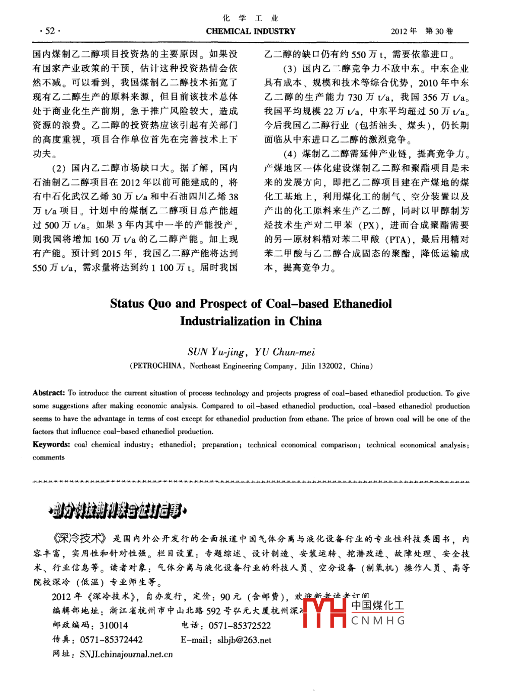 我國煤制乙二醇產(chǎn)業(yè)化現(xiàn)狀與前景