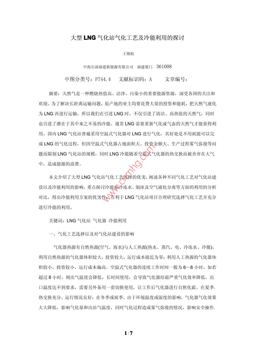 大型LNG氣化站氣化工藝及冷能利用的探討