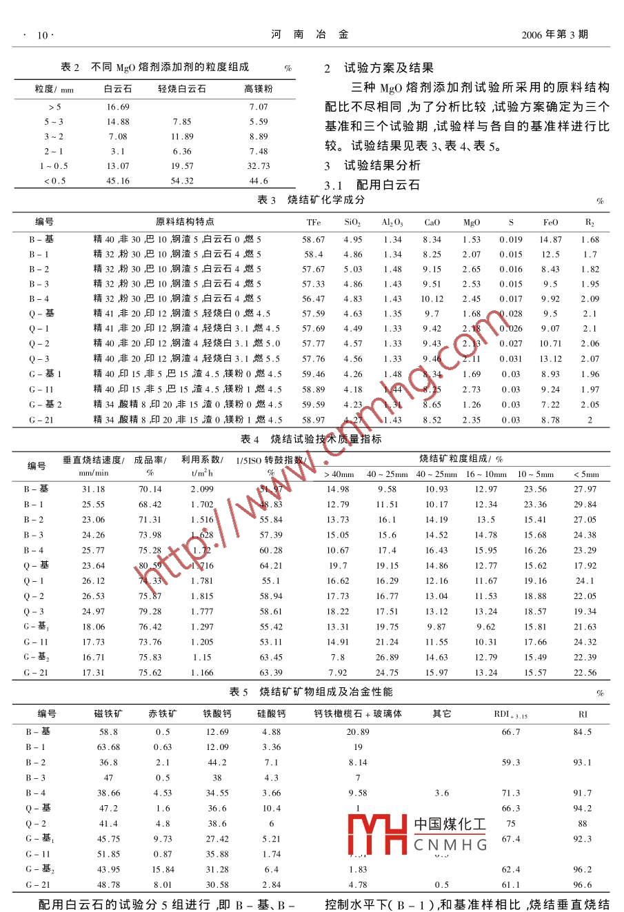 不同MgO熔劑添加劑的燒結(jié)試驗及生產(chǎn)
