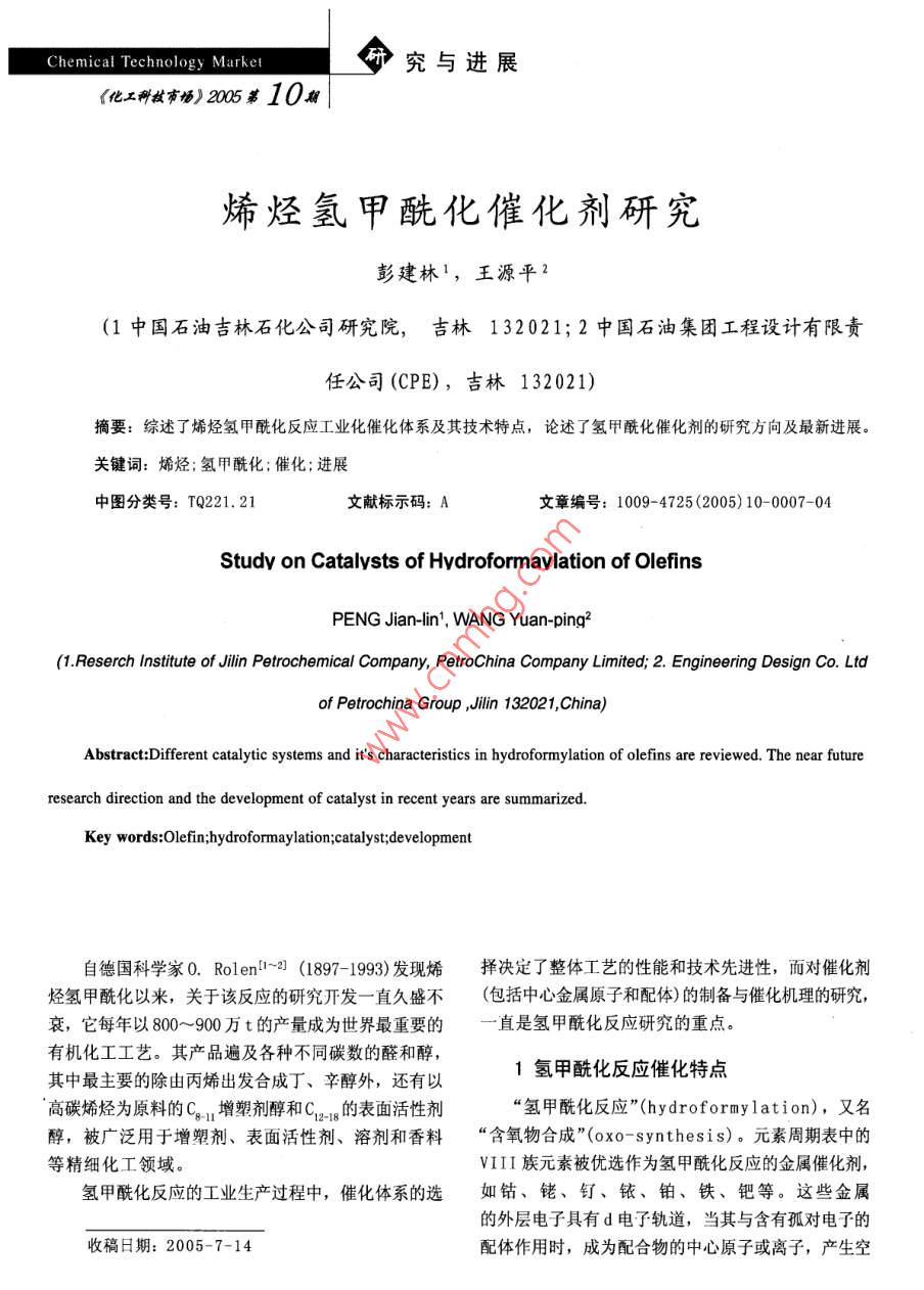烯烴氫甲?;呋瘎┭芯? uk-cover>