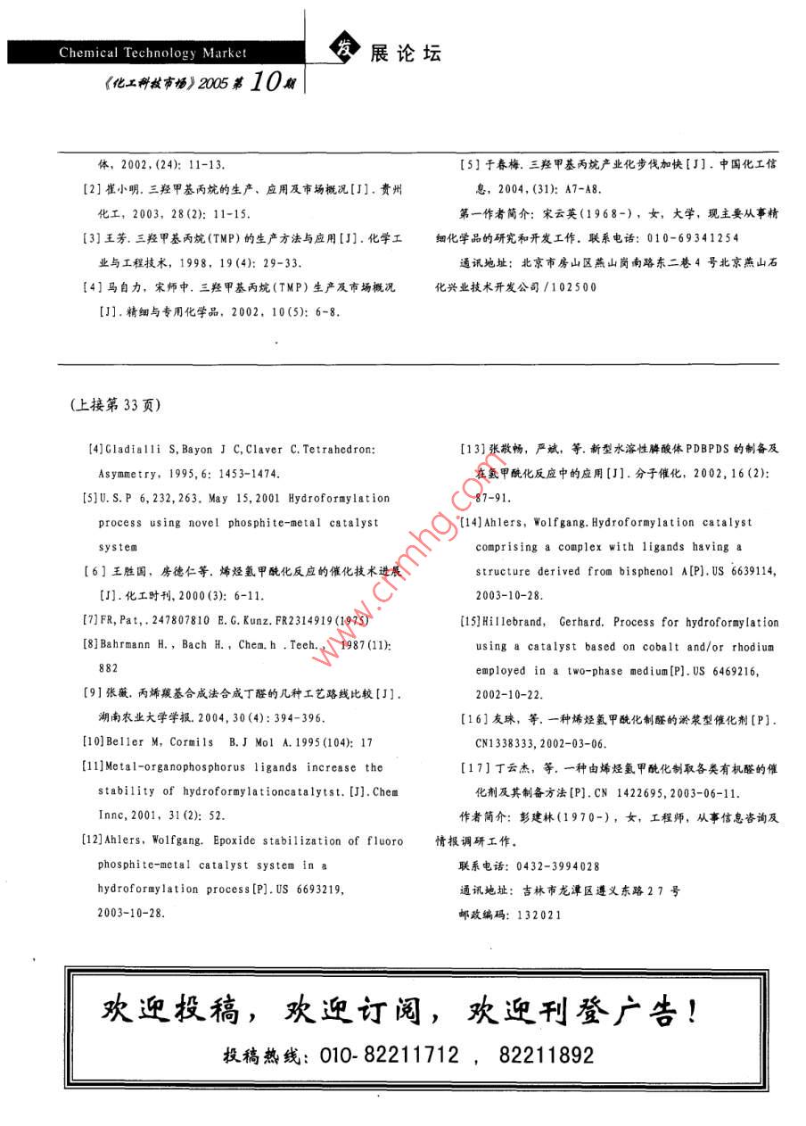 • 期刊名字:化工科技市場
