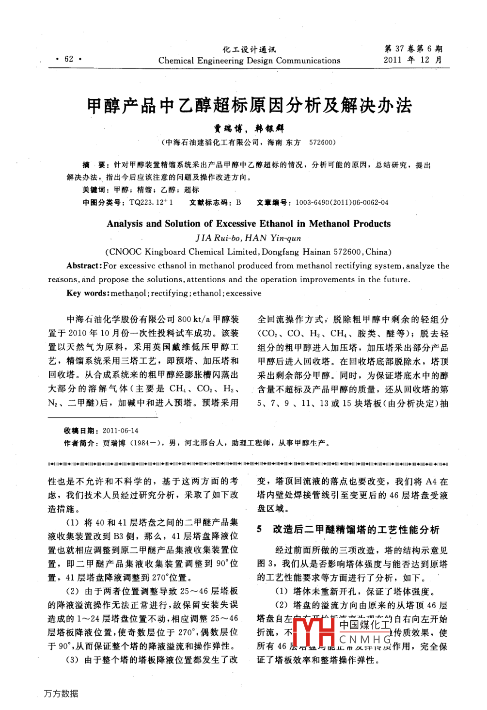 甲醇產(chǎn)品中乙醇超標原因分析及解決辦法