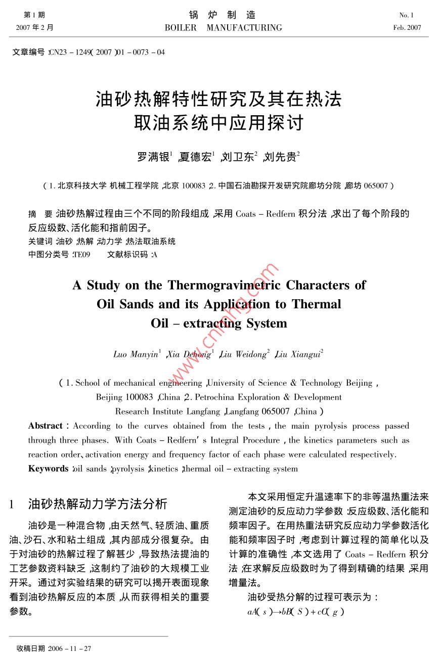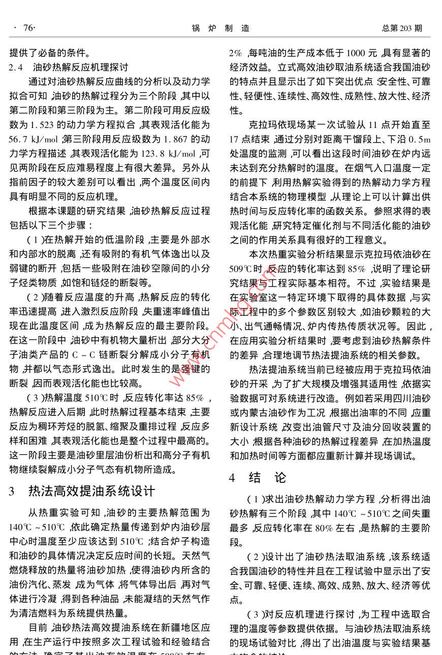 油砂熱解特性研究及其在熱法取油系統(tǒng)中應(yīng)用探討