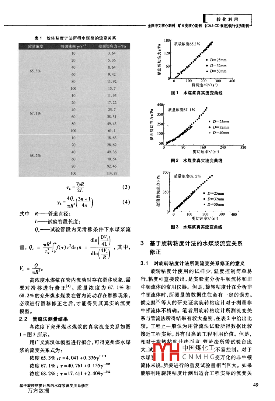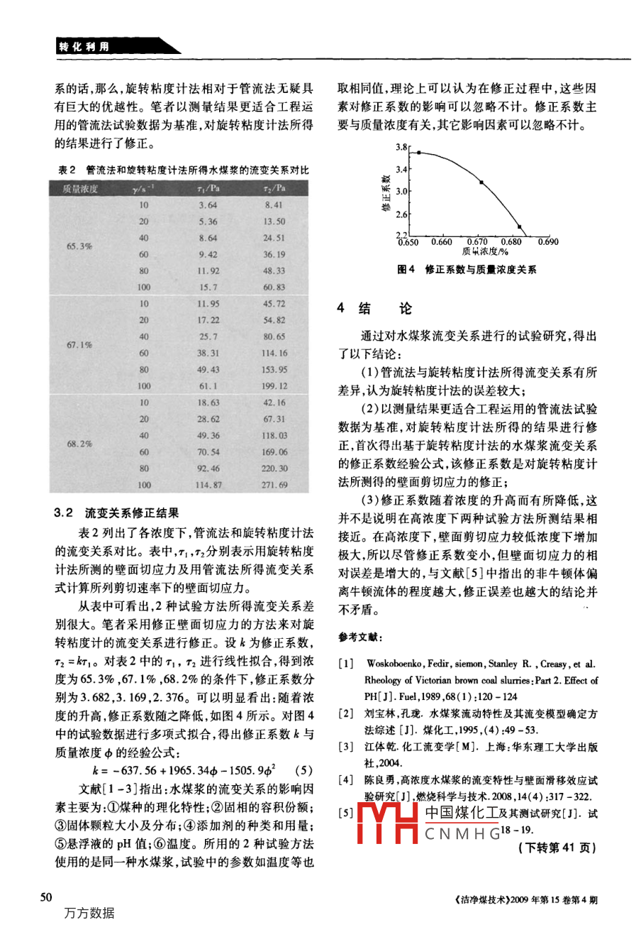 基于旋轉(zhuǎn)粘度計(jì)法的水煤漿流變關(guān)系修正