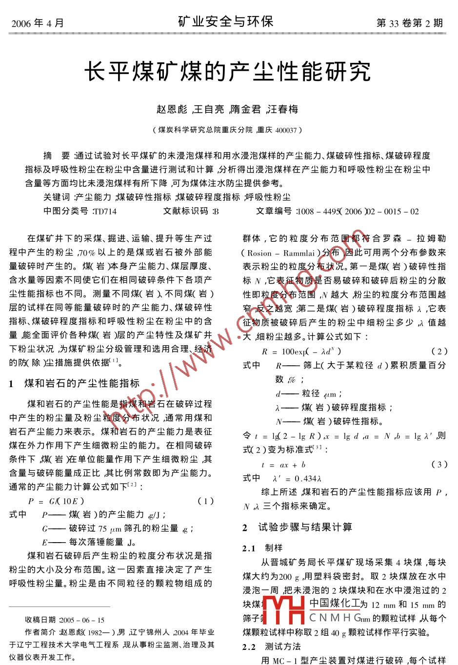 長(zhǎng)平煤礦煤的產(chǎn)塵性能研究